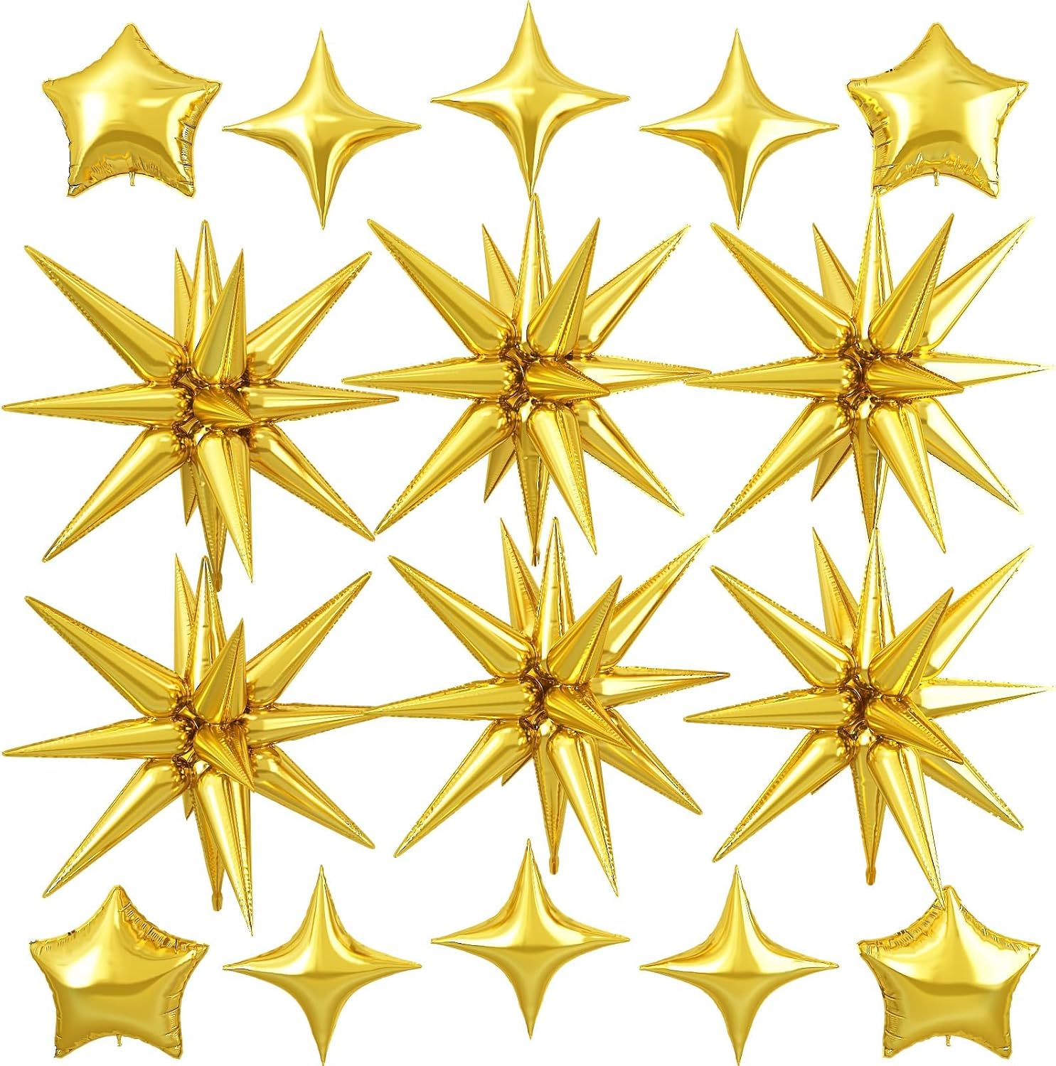 - Package: This set includes 6pcs 22inch gold explosion star foil balloons, 4pcs 10inch gold star foil balloons, 6pcs 10inch gold four angle star balloons, and a ribbon. Perfect for creating a dazzling party atmosphere.