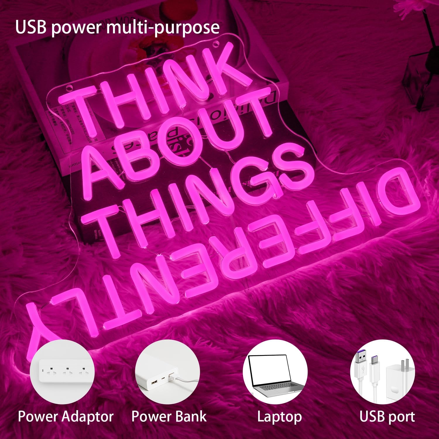 - Unique Design: Letter neon signs features the bold letters " Think About Things Differently"to create a unique visual effect, add a touch of personality to any room or business
