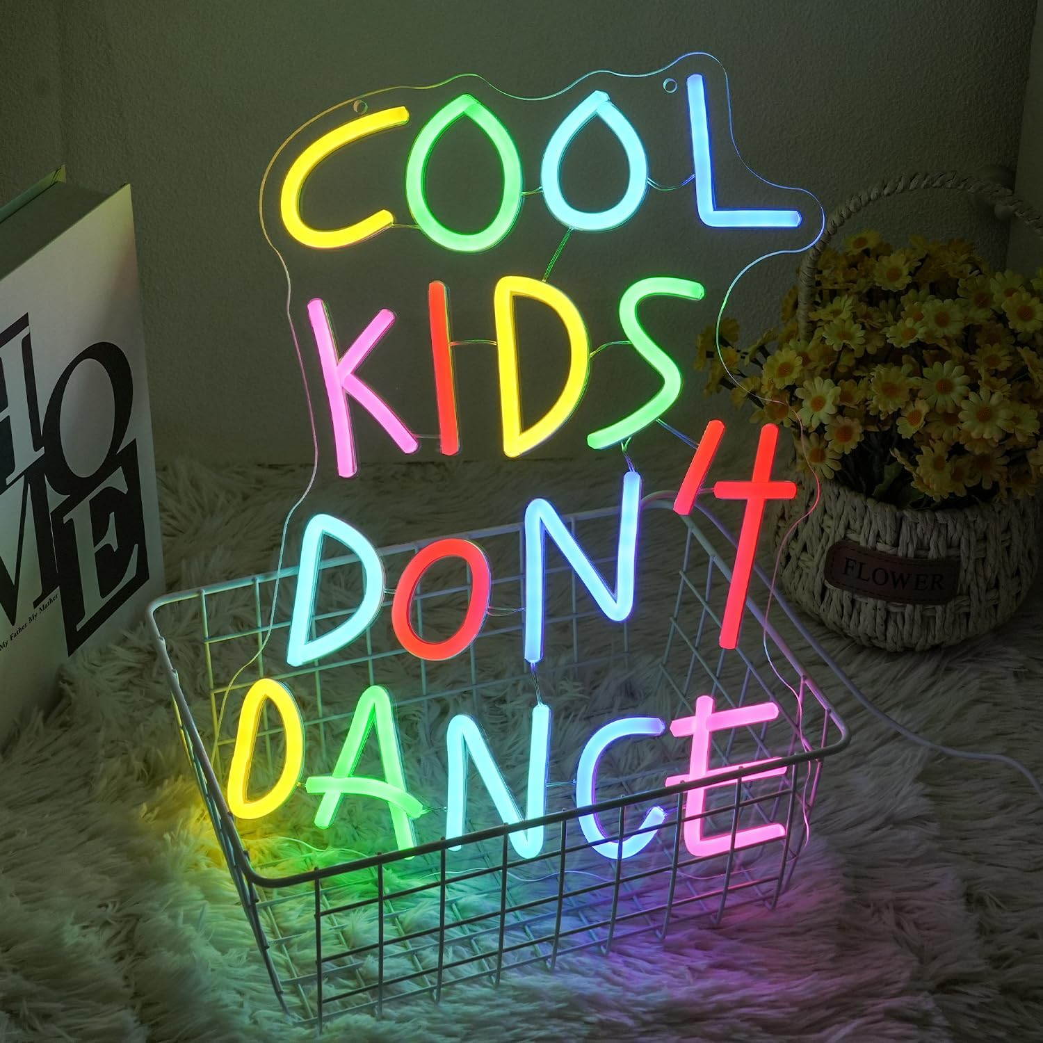 Cool Kids Don't Dance Neon Sign for Wall Decor, Cool Kids Letter Neon Light Wall Art, Dimmable Colorful Classroom LED Light Up Sign for Bedroom, Library, Classroom, Bookstore