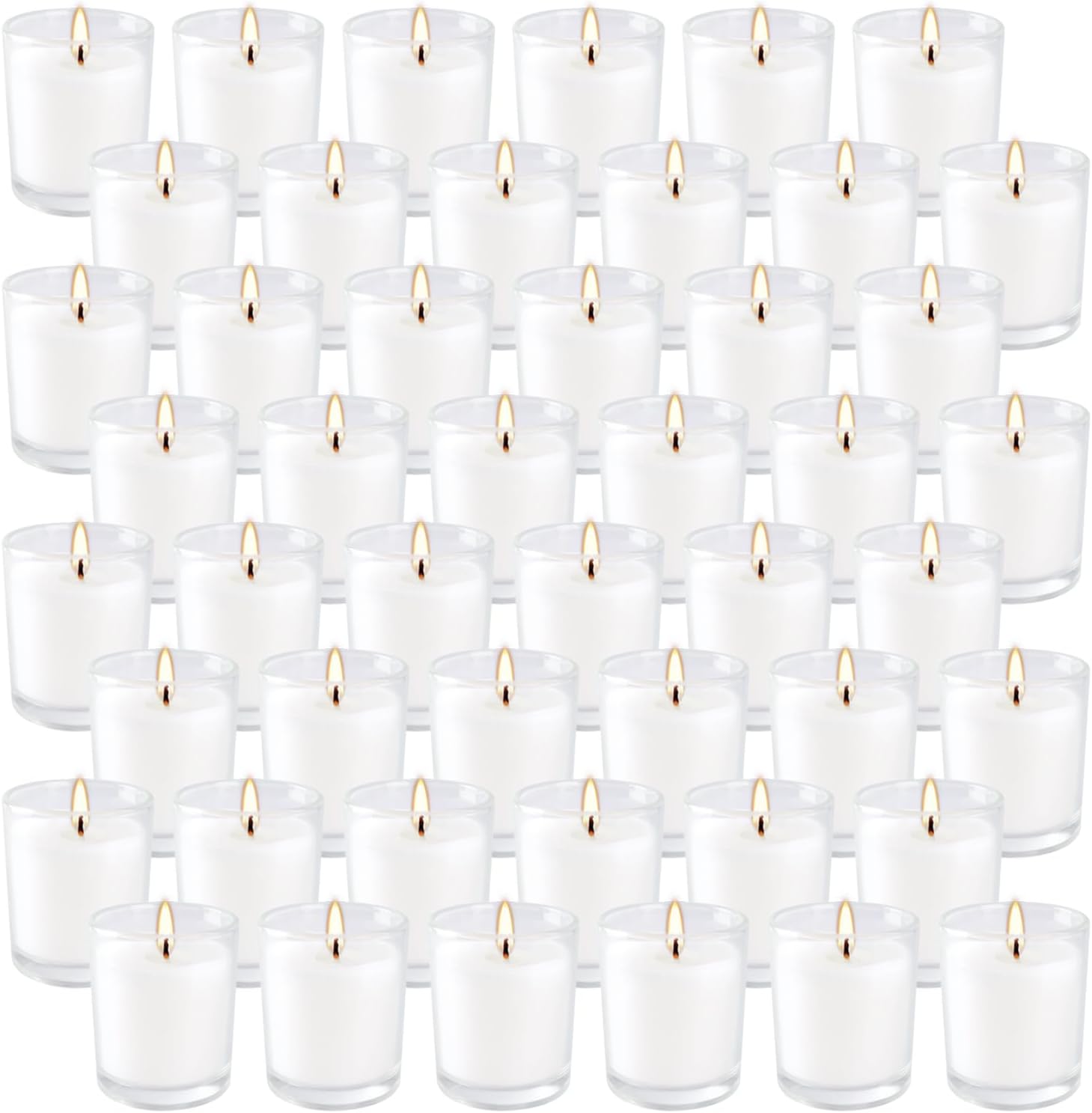 48 Pack Warm White Unscented Clear Glass Filled Votive Candles. Hand Poured Wax Candle Ideal Gifts for Aromatherapy Spa Weddings Birthdays Holidays Party.