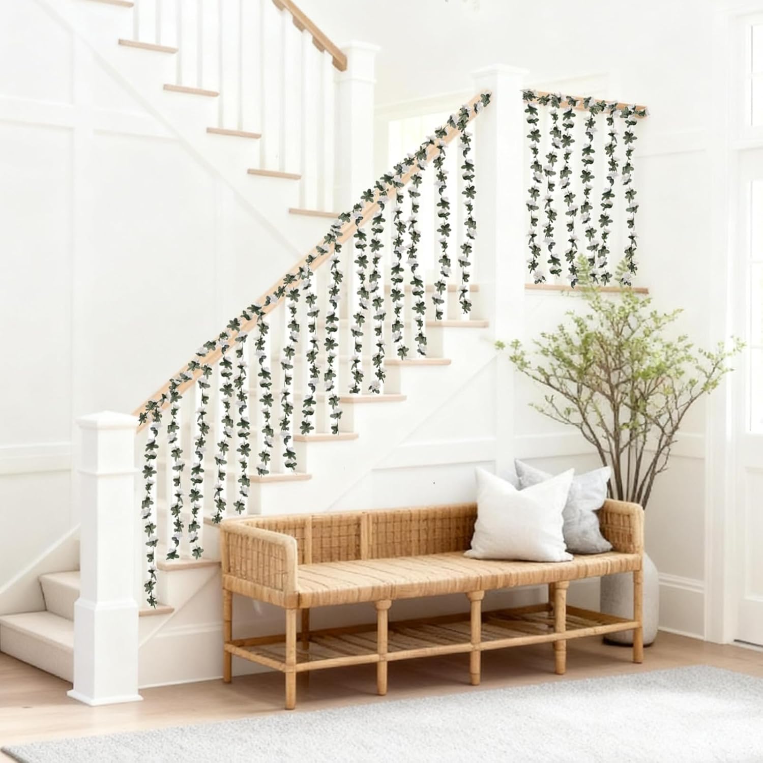 - EASY TO INSTALL: There is no glue on the flower heads so the flowers may come off the vine, but they are easy to install and can be secured with floral tape or pins. You can also adjust the length of the garland as needed