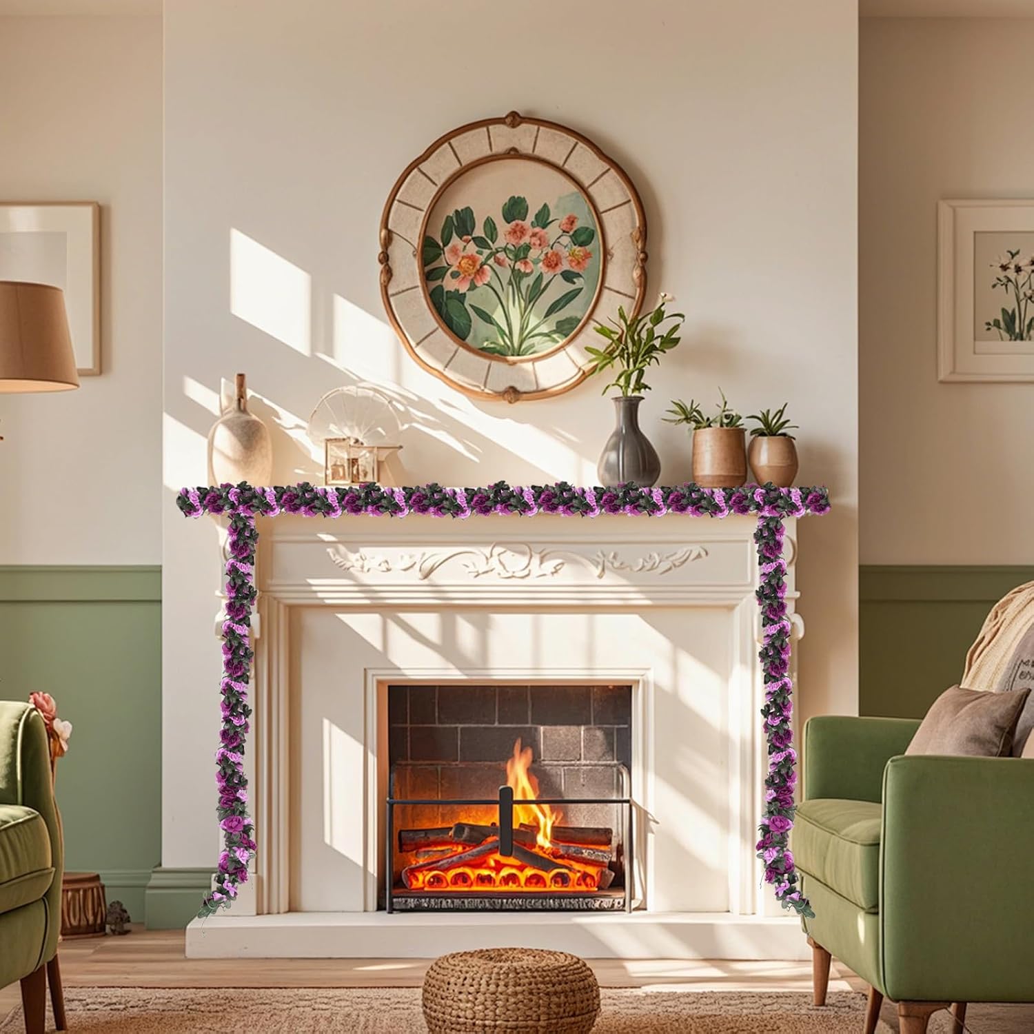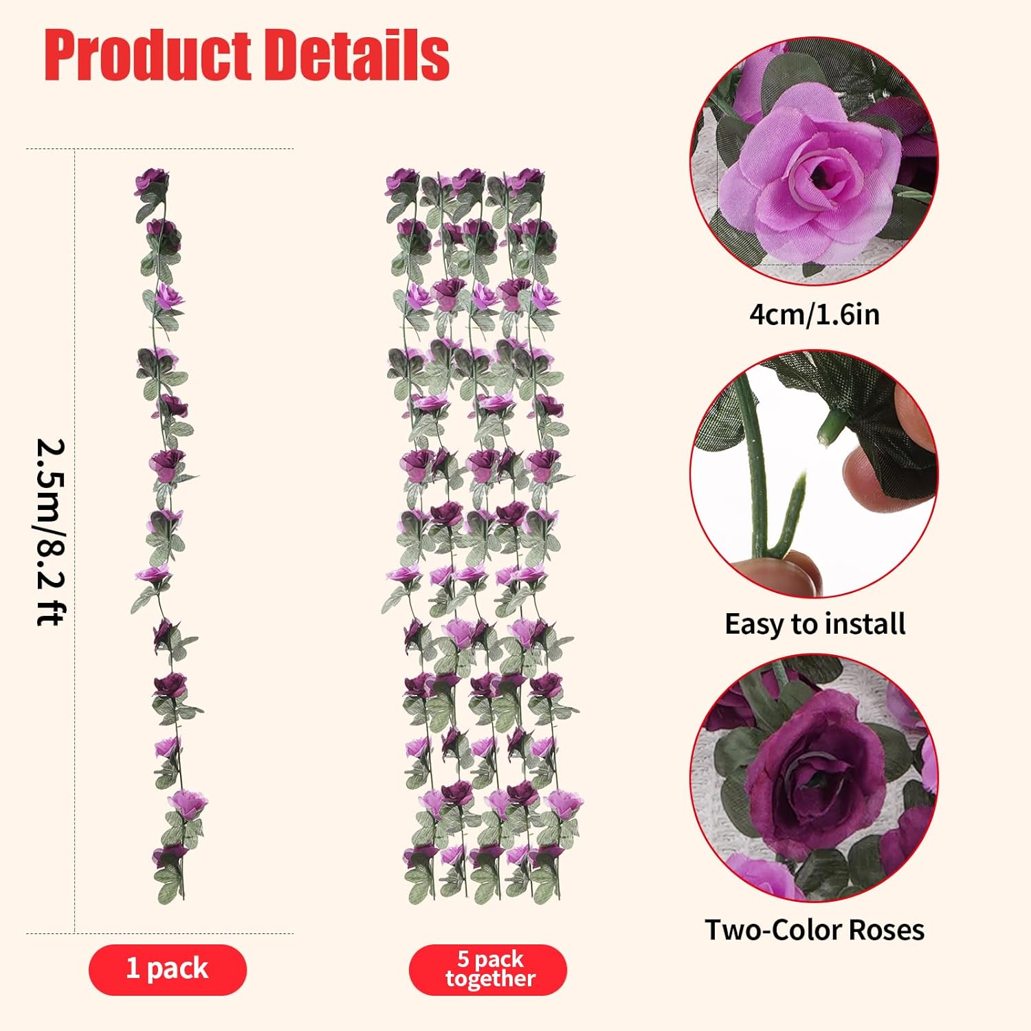 5 Pcs 41FT Flower Garland, Artificial Rose Garland Flowers Plants Fake Flower Hanging Rose Ivy, Birthday Party Valentine's Day Wedding Wall Arch Decor(Purple)