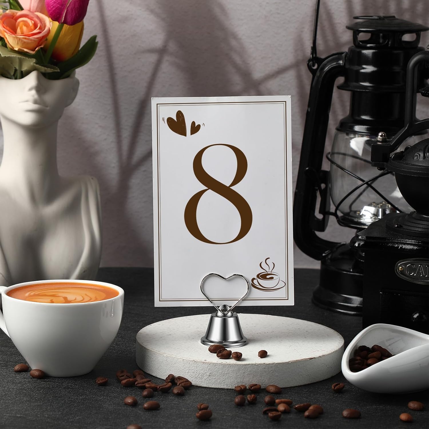 - Unique Bell Design: The bottom of wedding table number holders are in the shape of a bell, which is elegant and eye-catching. In addition, there is a built-in bell, which can make a crisp ringing sound when you shake it gently. It adds a warm and interactive experience to the party or wedding venue, and create a unique sense of ceremony