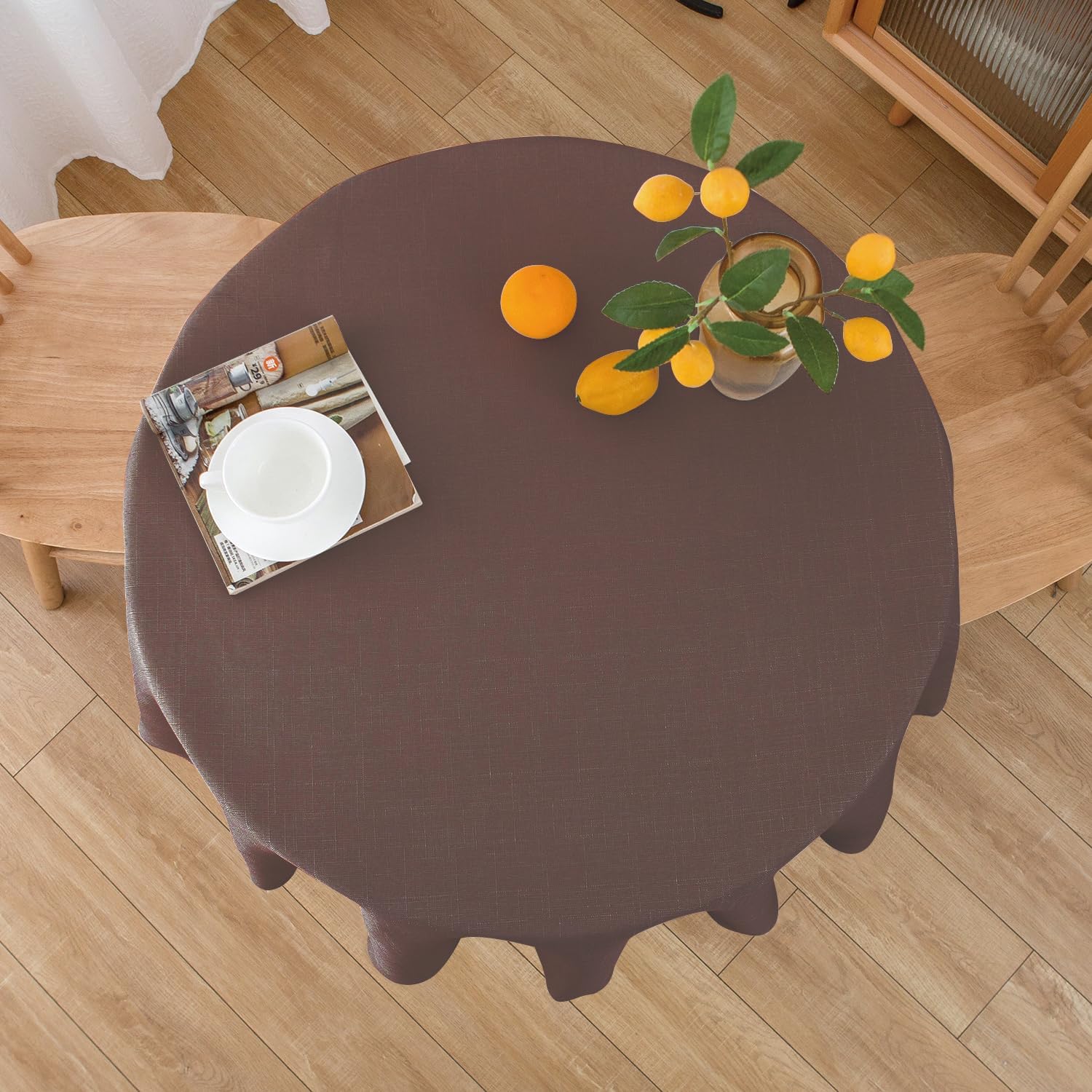 NLMUVW Brown Linen Tablecloth Round Tables Water Resistant Textured Table Cloth Farmhouse Table Cover for Kitchen Dining Coffee, 48 Inch