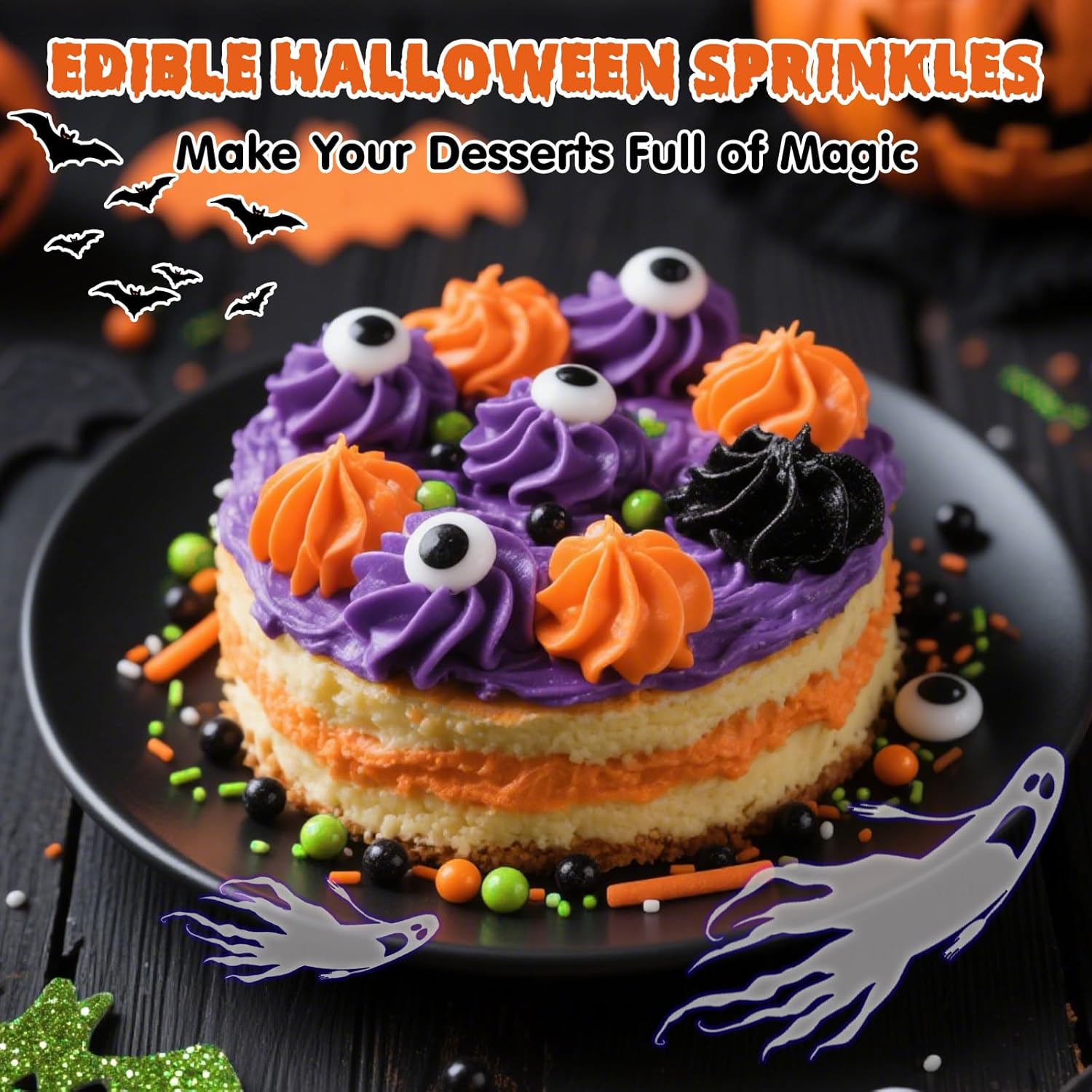 - Edible Halloween Terrifying Sprinkles with food-grade raw materials: Preservative Free,Nut Free, Dairy Free, Chemical Free,Soy Free,Non-GMO.Produced using food-safe standards, the process does not come into contact with allergenic substances and uses Tamper-proof food label.They're just as safe as they are tasty