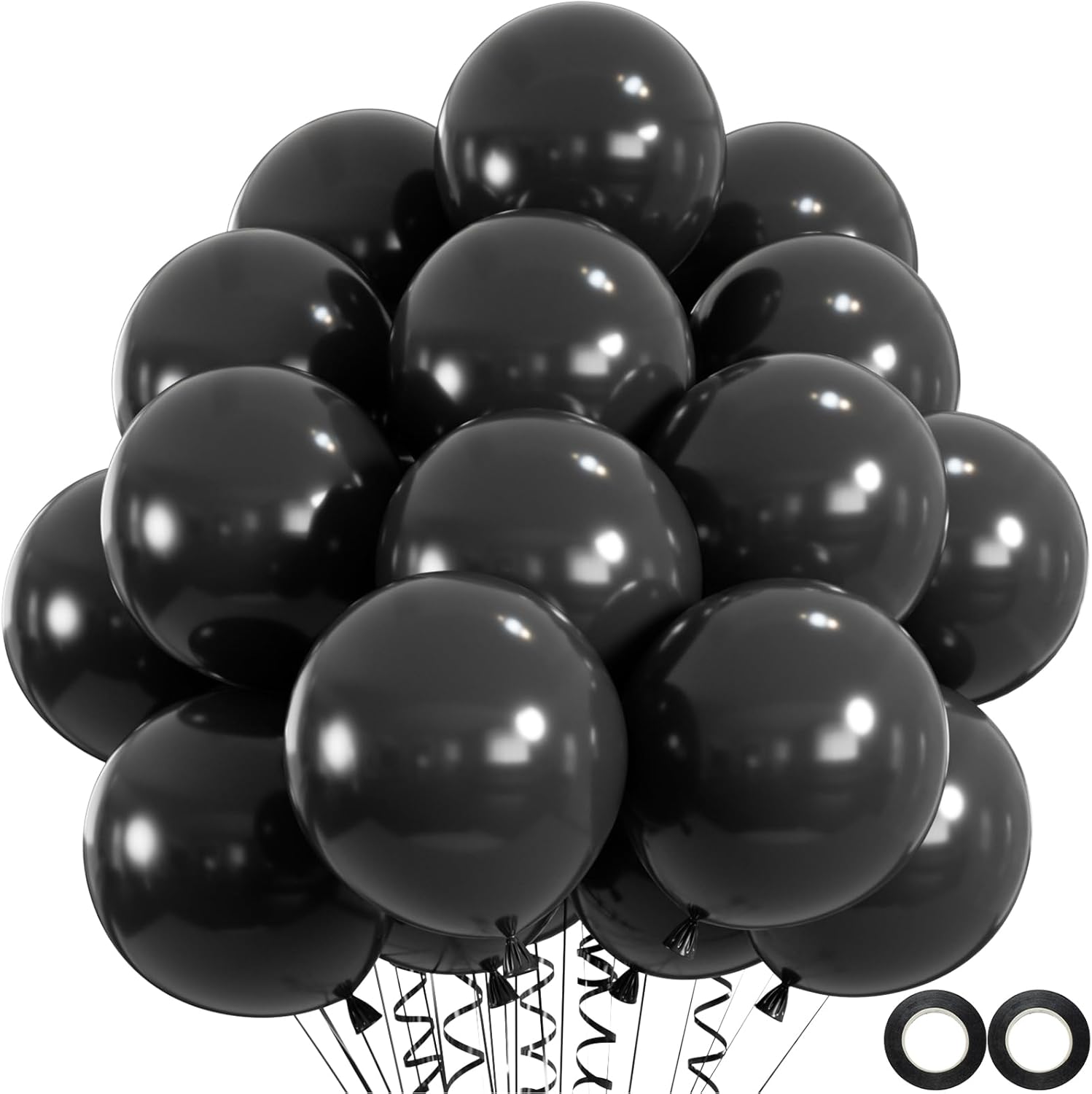 - 【WHAT YOU WILL GET】100pcs 12 inch latex party balloons in black color +2 rolls of black ribbons