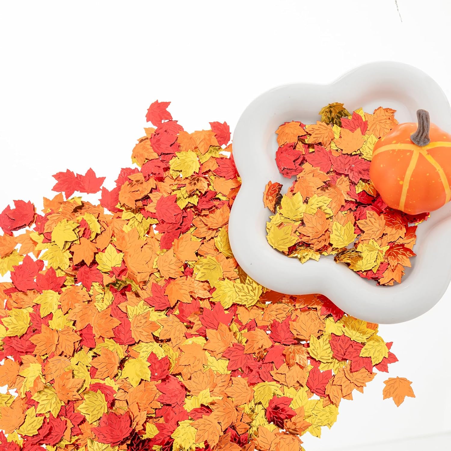 - Package Included: You will get 100g/3.53oz glitter maple leaf confetti in 3 different colors,about more than 800pcs fall table confetti in one package. Sufficient quantity to meet your needs for Thanksgiving party decorations.Add more festival atmosphere to your home and party