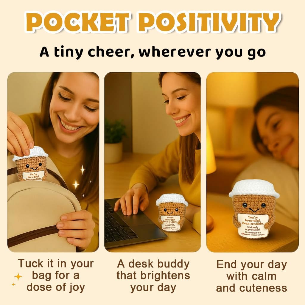 Coffee Lovers Gifts for Women, Positive Espresso Emotional Crochet Handmade Support, Small Appreciation Gifts for Coworker, Teacher Friends Thank You Gift