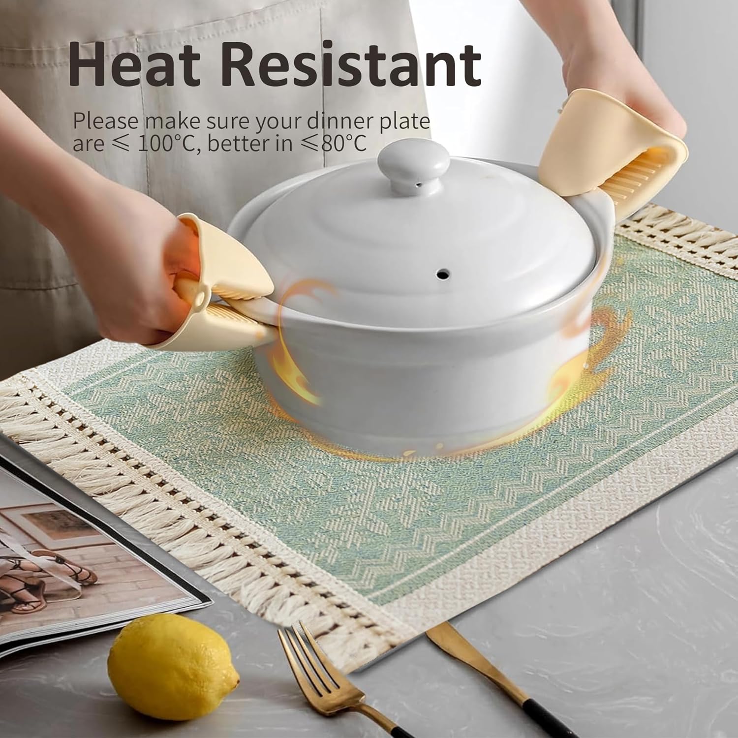 - Washing instructions: Farmhouse placemats hand wash with cold water, lay flat in a cool place to dry.Kitchen placemats avoid bleaching and ironing to maintain the color and tassel shape