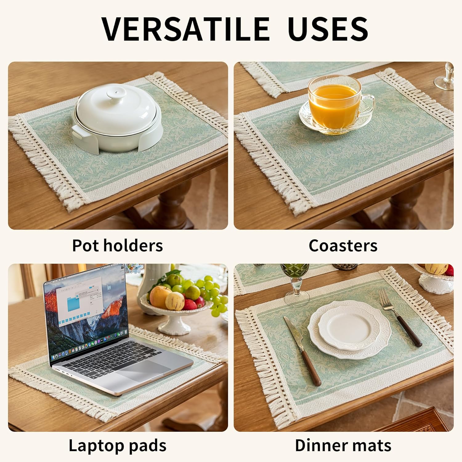 - Exquisite design Summer placemats adopts tassel decoration and ethnic geometric prints, with earth tones as the base tone and hand-embroidered details.Washable placemats interprets the free and unrestrained exotic exquisite design