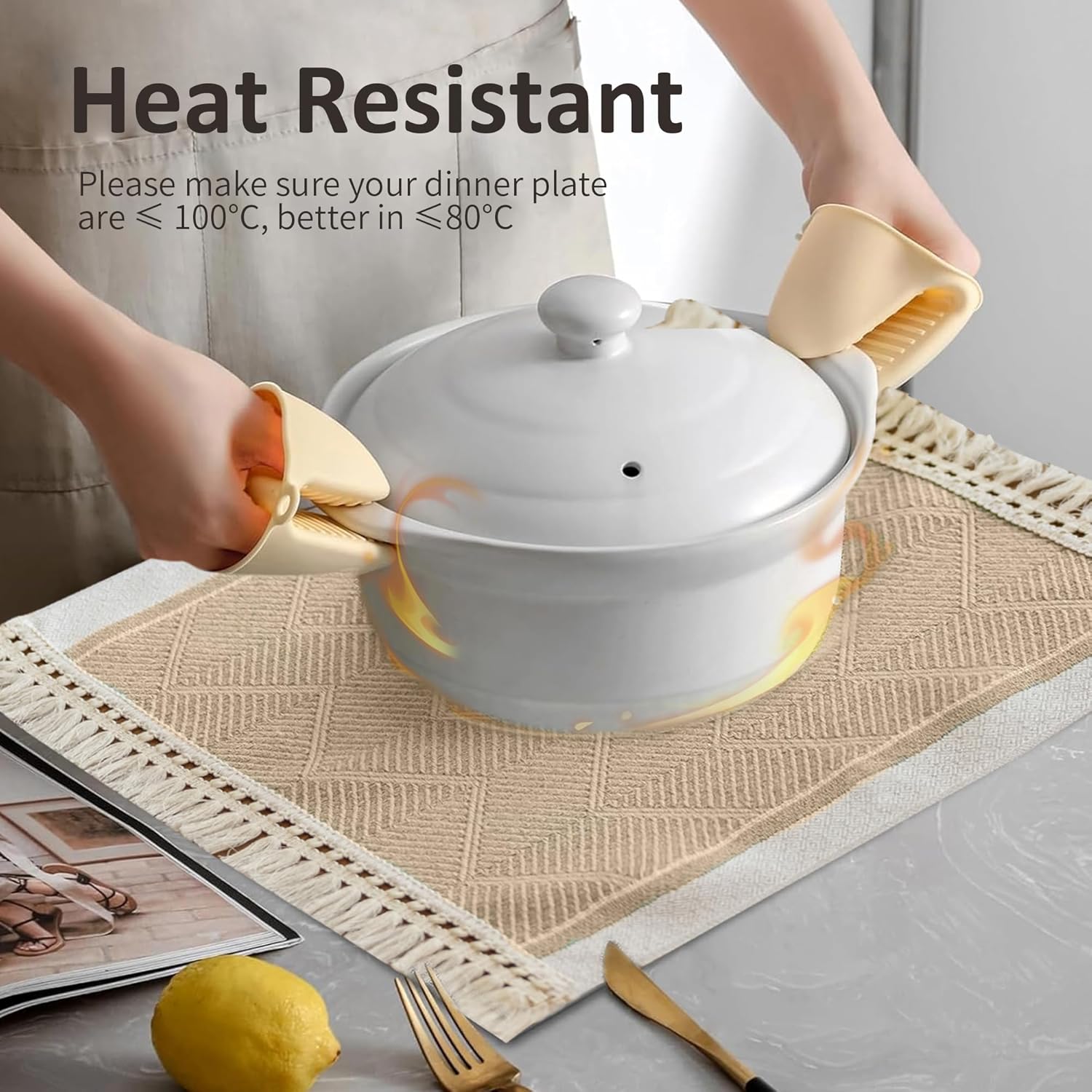 - Washing instructions: Farmhouse placemats hand wash with cold water, lay flat in a cool place to dry.Kitchen placemats avoid bleaching and ironing to maintain the color and tassel shape