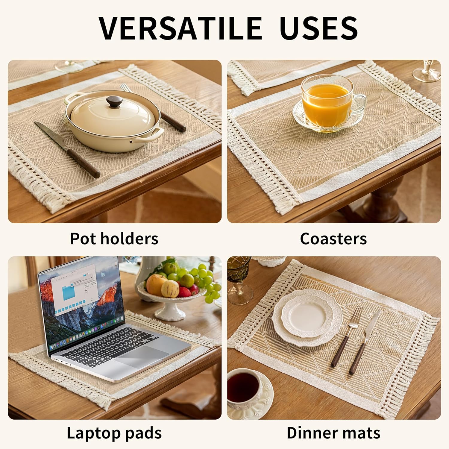 - Exquisite design Summer placemats adopts tassel decoration and ethnic geometric prints, with earth tones as the base tone and hand-embroidered details.Washable placemats interprets the free and unrestrained exotic exquisite design