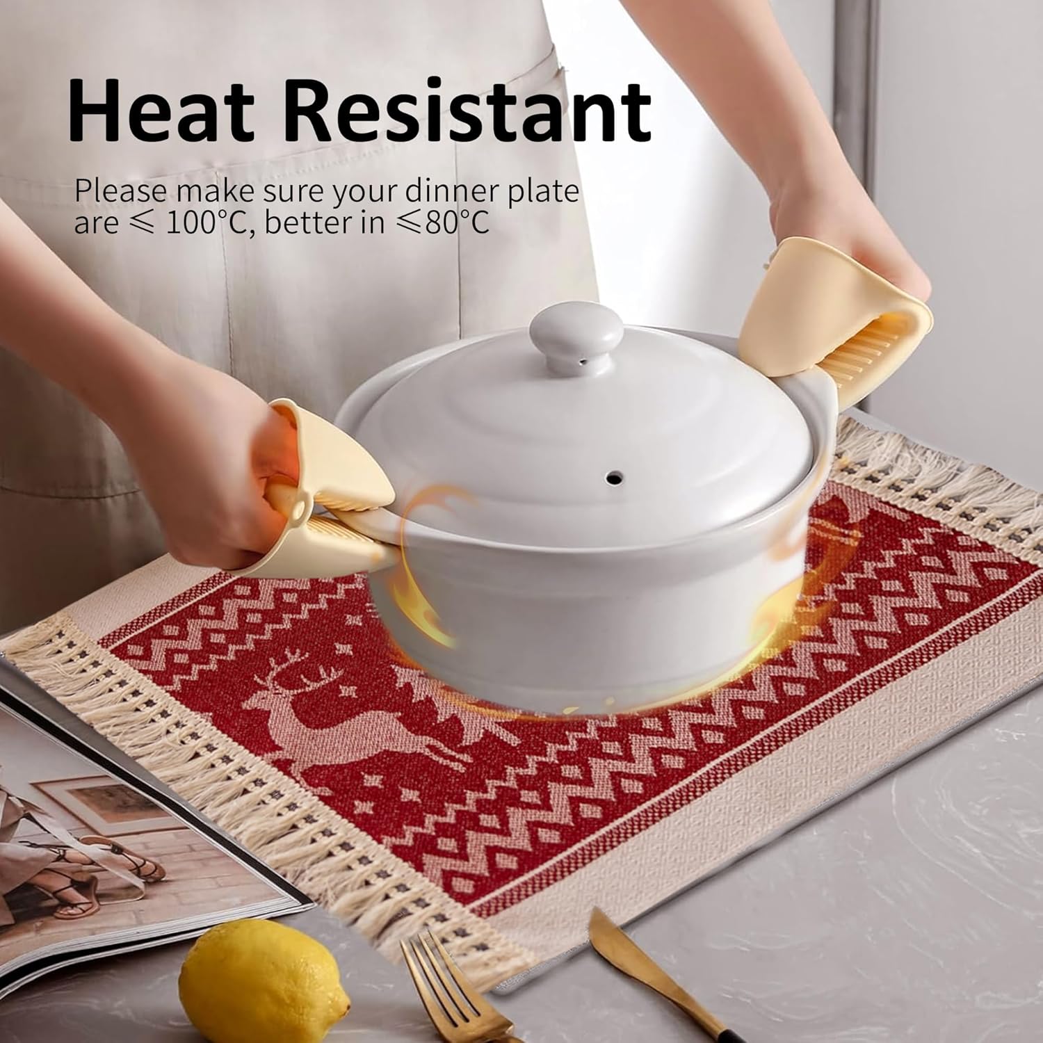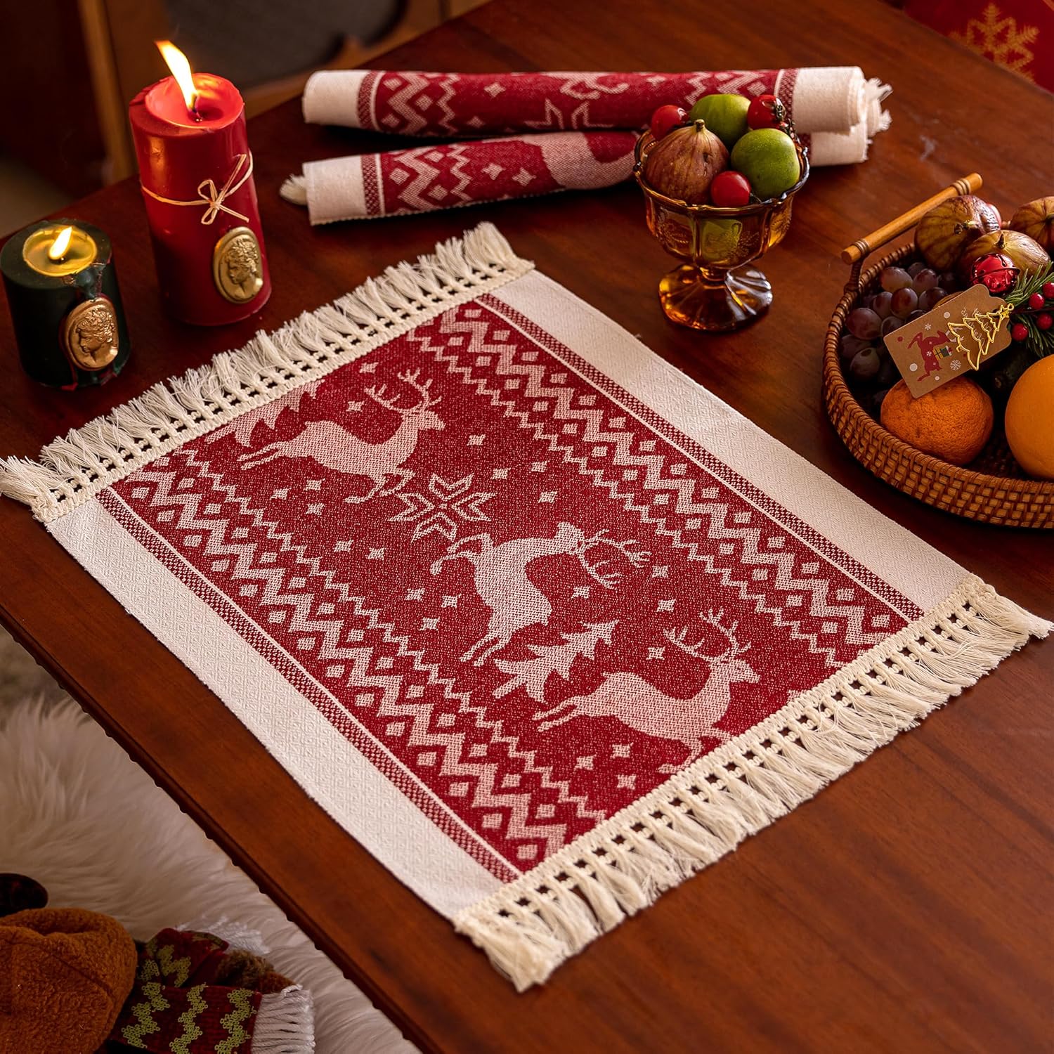 Placemats Set of 4,Elk Placemat with Tassel Fringe,Christmas Placemats for Coffee Table Western Restaurant