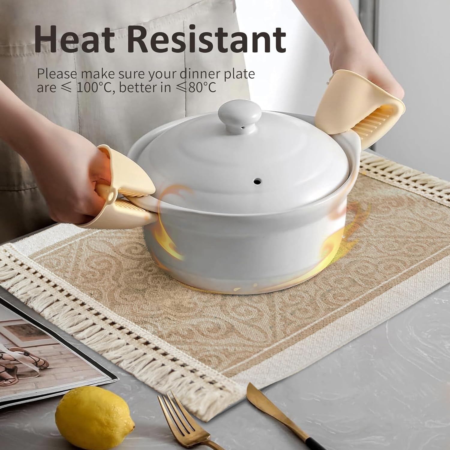- Washing instructions: Farmhouse placemats hand wash with cold water, lay flat in a cool place to dry.Kitchen placemats avoid bleaching and ironing to maintain the color and tassel shape