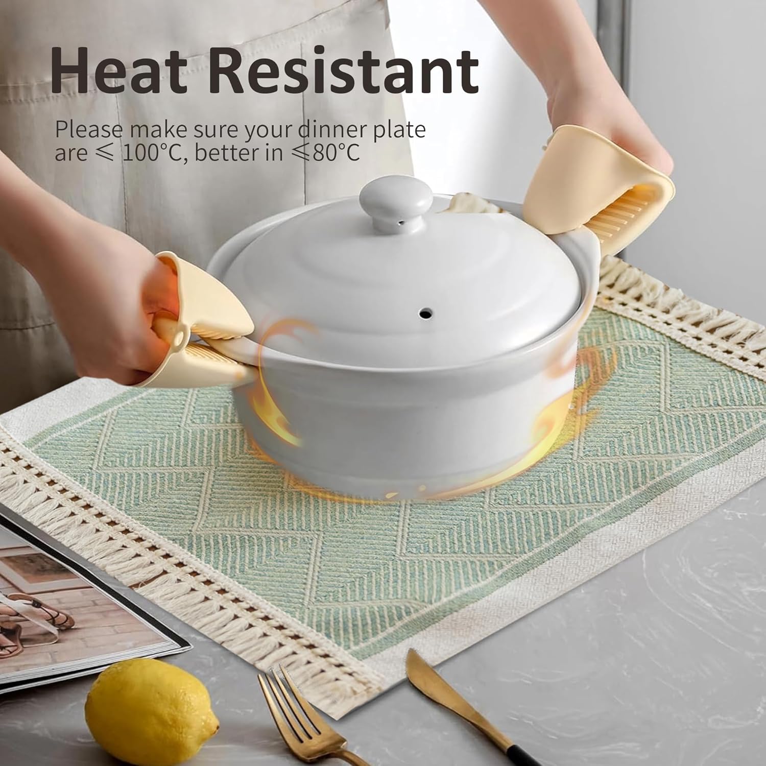 - Washing instructions: Farmhouse placemats hand wash with cold water, lay flat in a cool place to dry.Kitchen placemats avoid bleaching and ironing to maintain the color and tassel shape