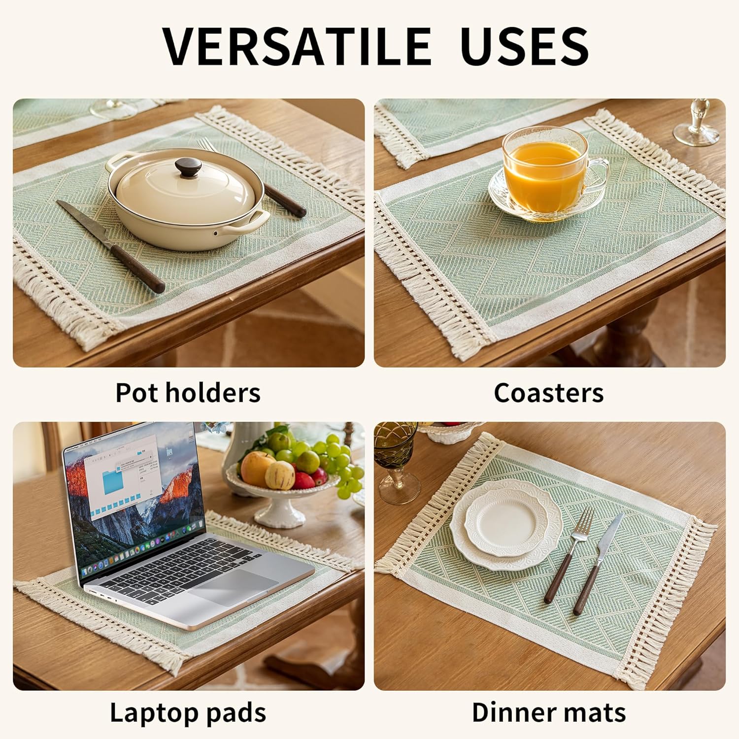 - Exquisite design Summer placemats adopts tassel decoration and ethnic geometric prints, with earth tones as the base tone and hand-embroidered details.Washable placemats interprets the free and unrestrained exotic exquisite design