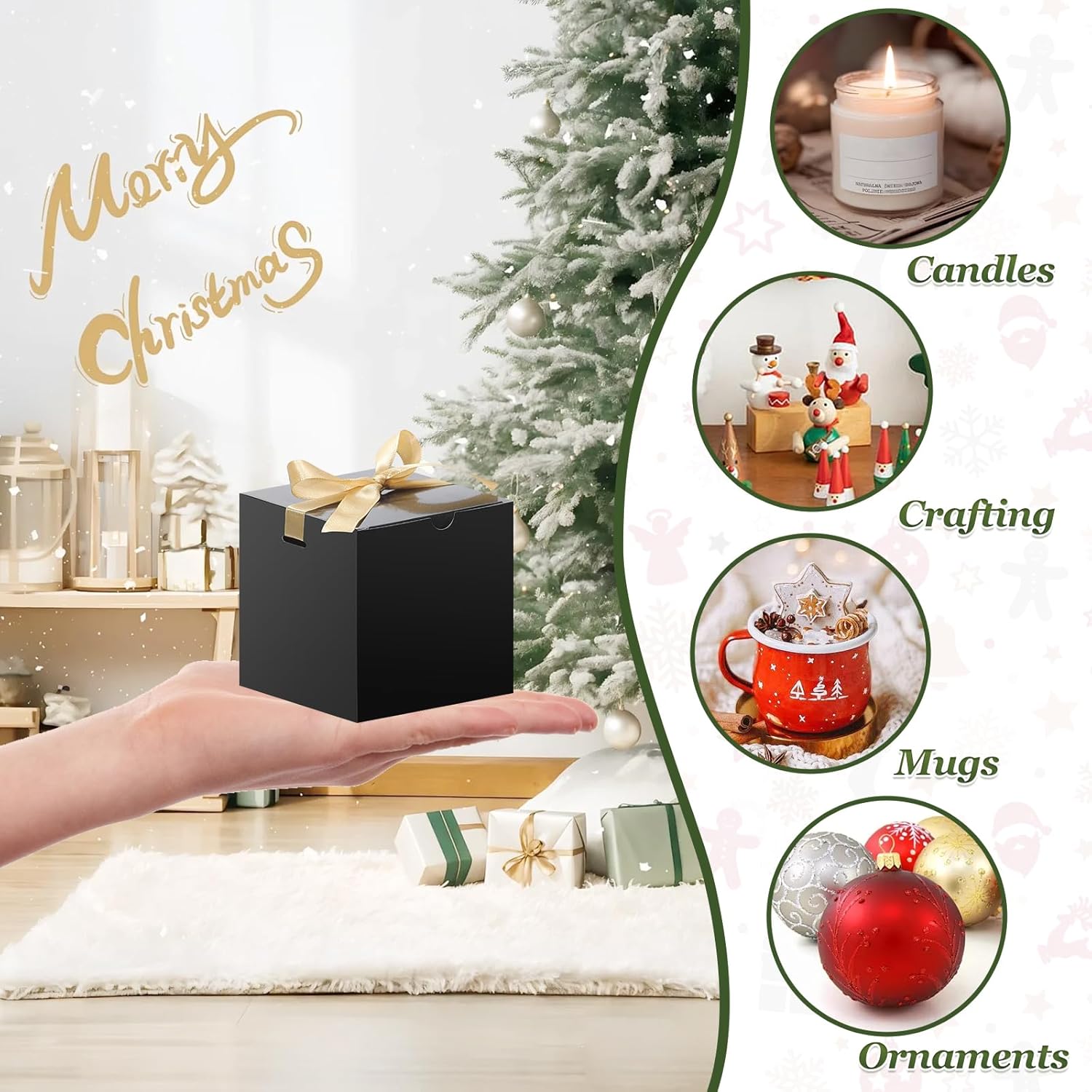 DOYIDE Small Gift Boxes, 60 Pcs 4x4x4 Inch Black Elegant Paper Box with Ribbons, Party Favor Boxes for Candy Cupcake Christmas Wedding Baby Shower Bridesmaids Birthday