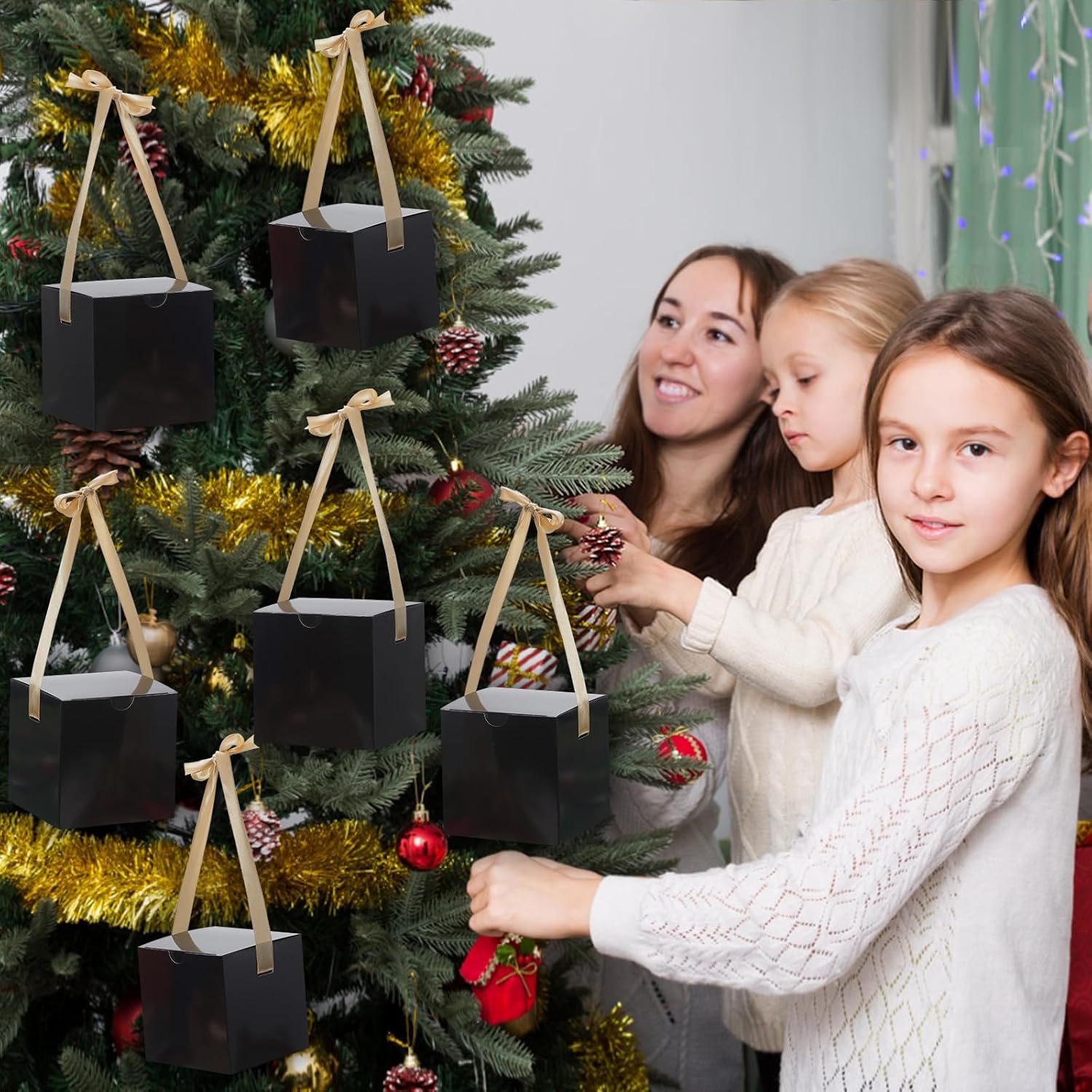 - What You'll Get: 20pcs black favor boxes, 20pcs gold ribbons, 1 pcs manual. you can tie a cross or bow knot on top, which will be more elegant and romantic for party