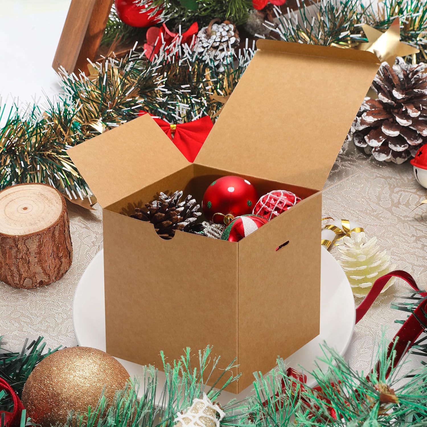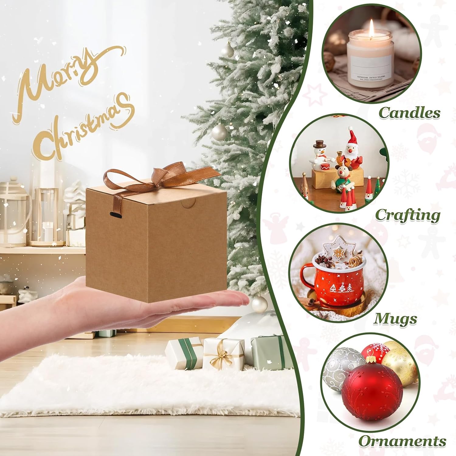 DOYIDE 20 Pack Small Gift Boxes, 6x6x6 Inch Brown Elegant Paper Boxes with Ribbons, Christmas Gift Box Crafting, Wedding Party Favor, Cupcake, Candy, Bridesmaids Proposal Box