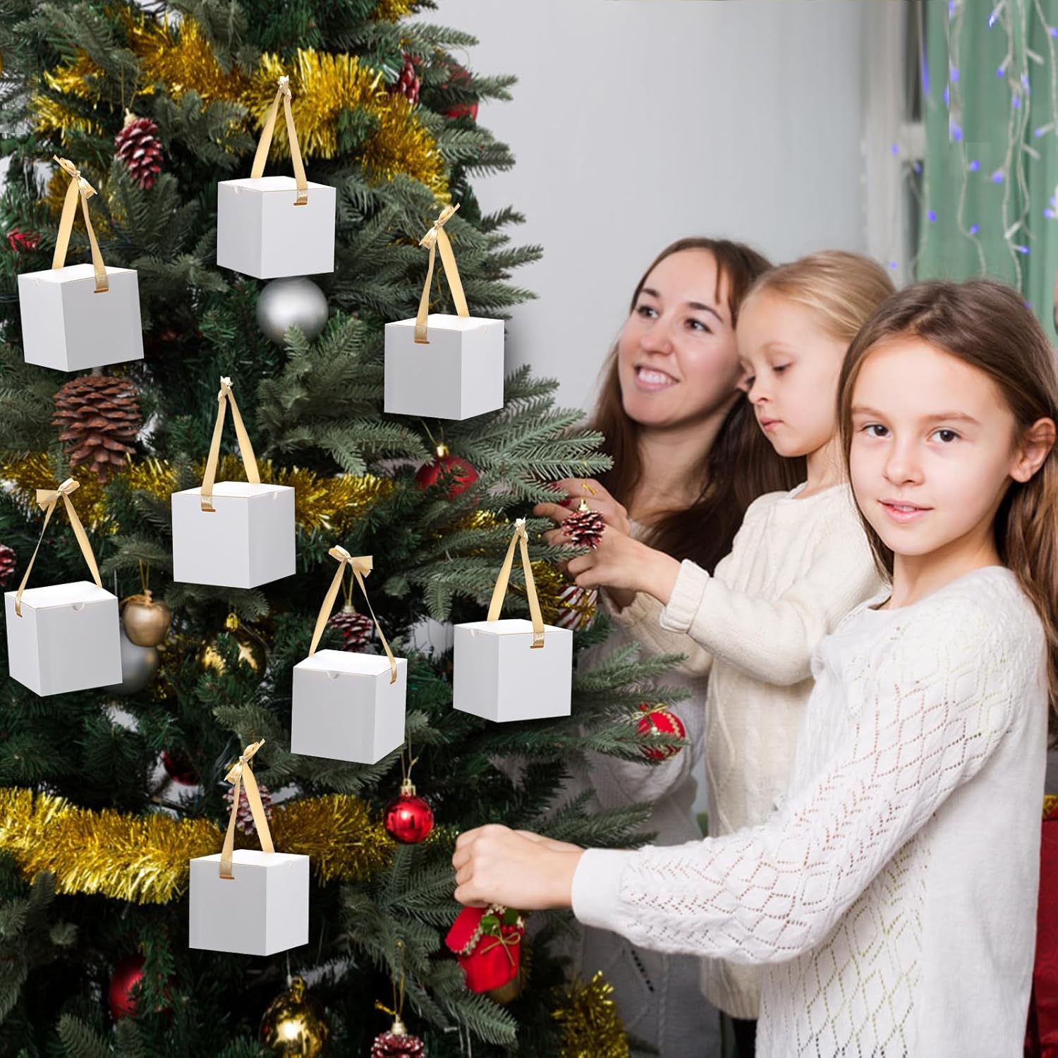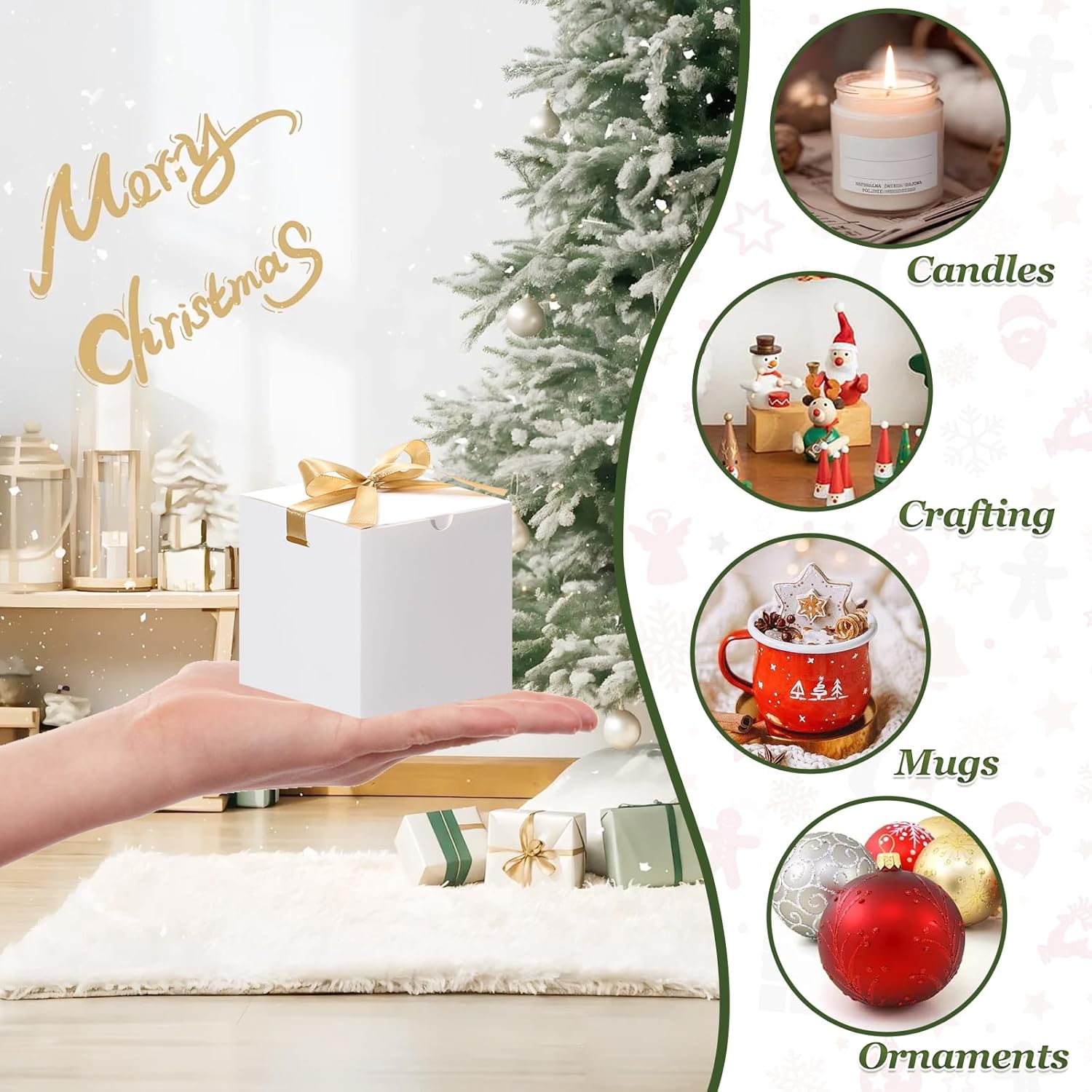 DOYIDE 60 Pcs Small Gift Boxes, 3x3x3 inches Kraft Paper Gift Box with Ribbons, White Candy Boxes for Christmas Wedding Favors Baby Shower Bridal Shower Birthday Party