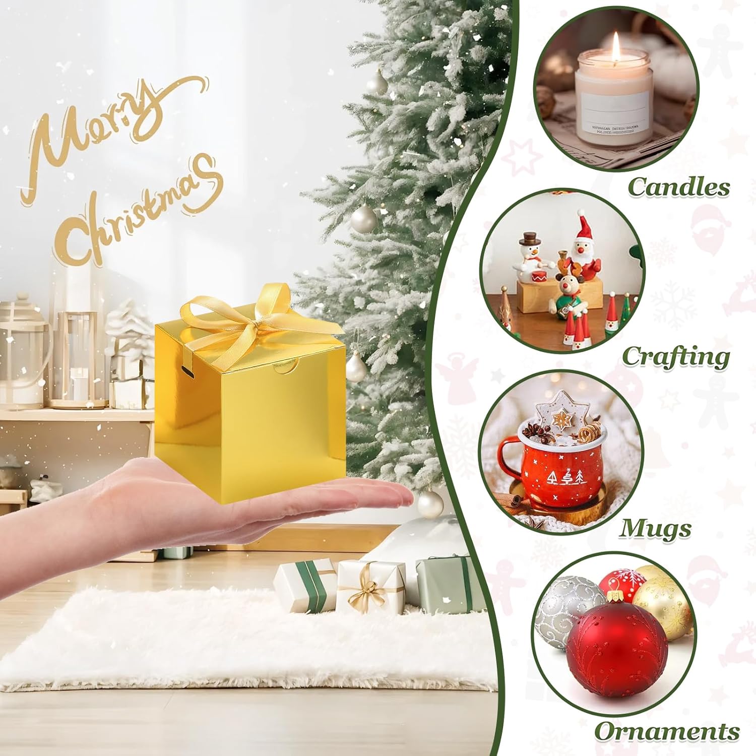 DOYIDE 60 Pcs Small Gift Boxes, 3x3x3 inches Kraft Paper Gift Box with Ribbons, Gold Candy Boxes for Christmas Wedding Favors Baby Shower Bridal Shower Birthday Party