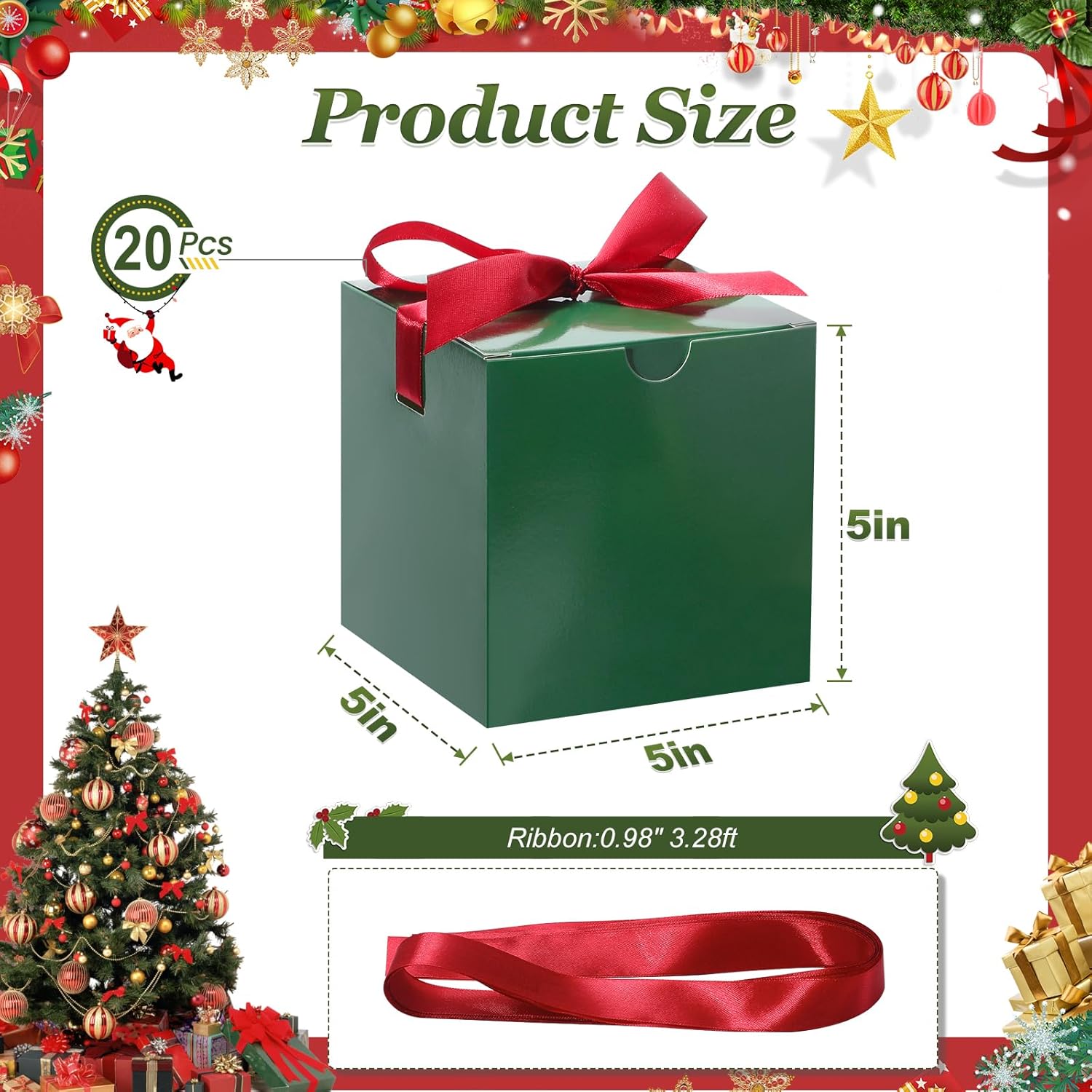 DOYIDE Small Gift Boxes, 20 Pack 5x5x5 Inch Green Elegant Paper Boxes with Ribbons, Crafting, Christmas Gift Box Wedding Party Favor, Cupcake, Candy, Bridesmaids Proposal Box