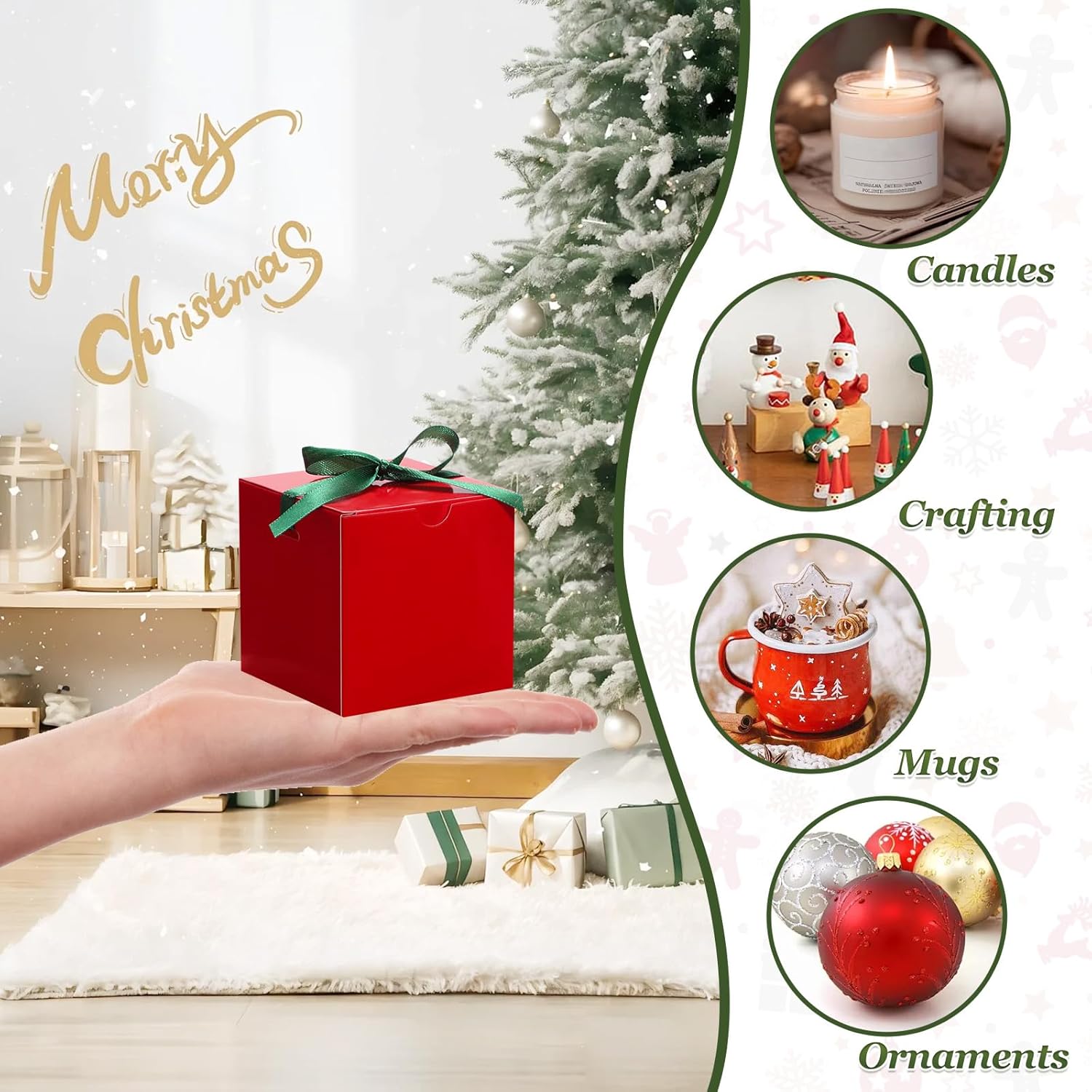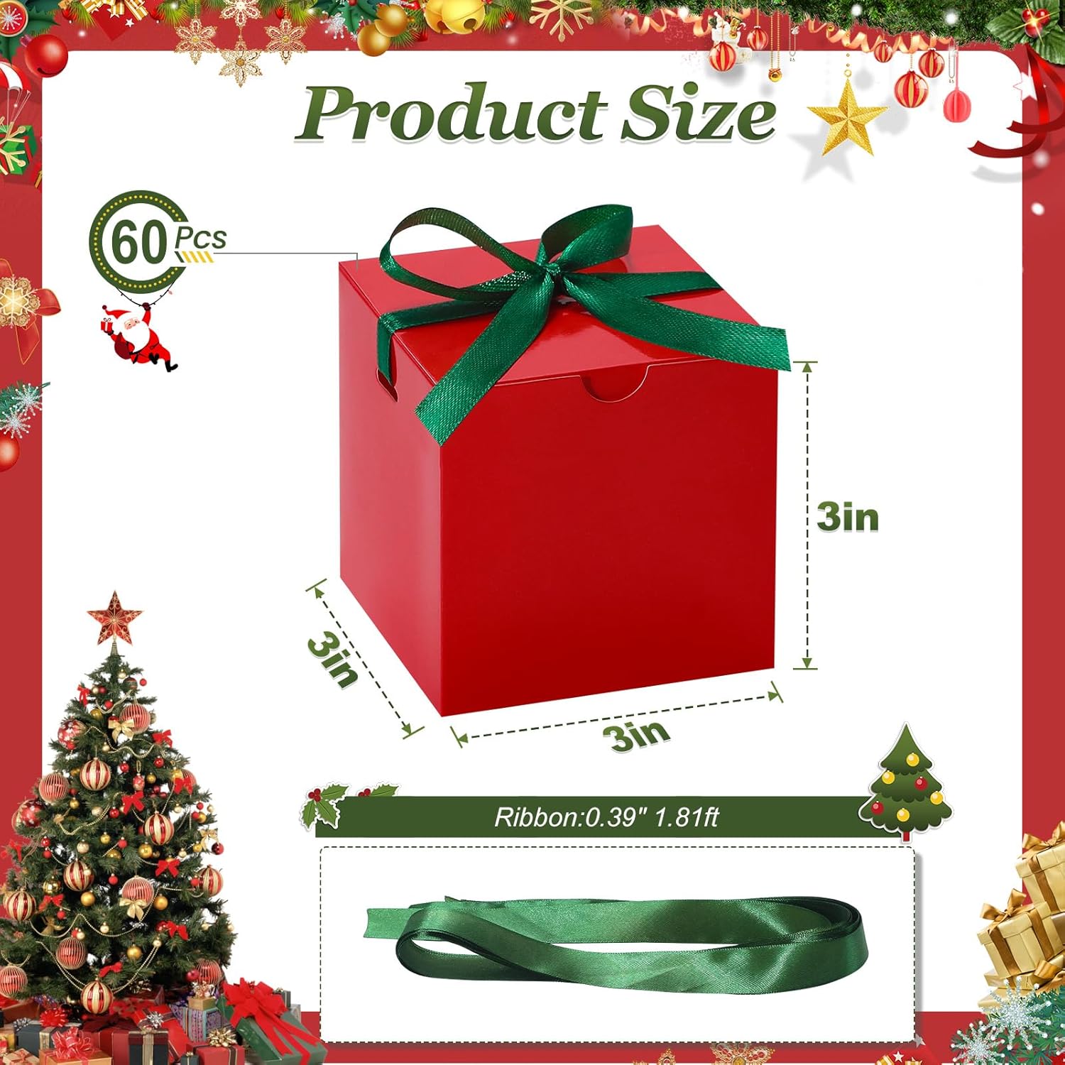 DOYIDE 60 Pcs Small Gift Boxes, 3x3x3 inches Kraft Paper Gift Box with Ribbons, Red Candy Boxes for Christmas Wedding Favors Baby Shower Bridal Shower Birthday Party