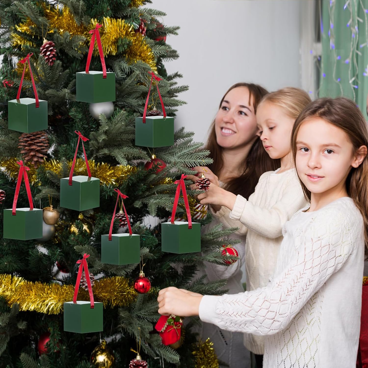 - What You'll Get: 60pcs green favor boxes, 60pcs red ribbons, 1 pcs manual. you can tie a cross or bow knot on top, which will be more elegant and romantic for party