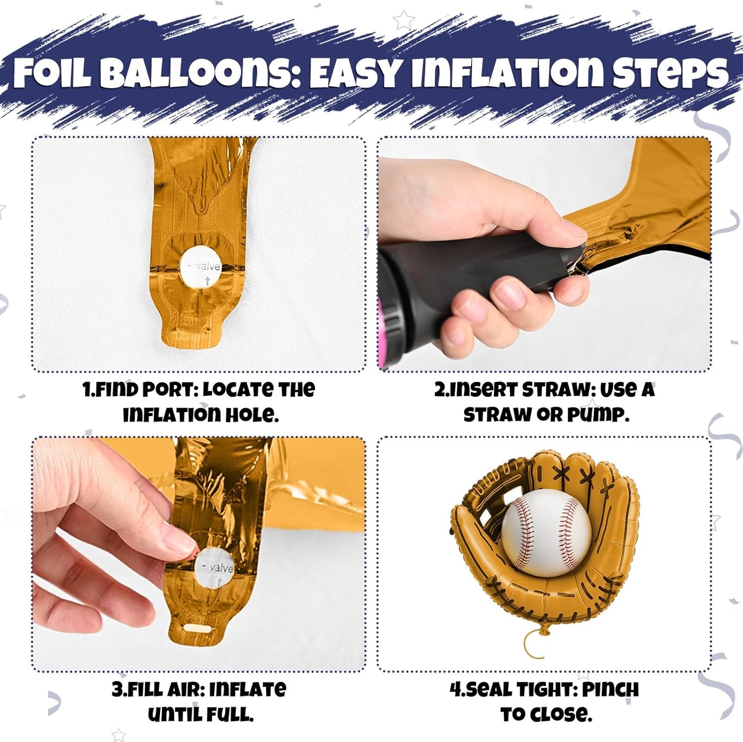 - 【Versatile for Many Occasions】Ideal for baseball birthday parties, team celebrations, boy first birthday decorations, rookie of the year events, and more. The glove and ball foil balloons add a fun sports touch, making your party unique and memorable.
