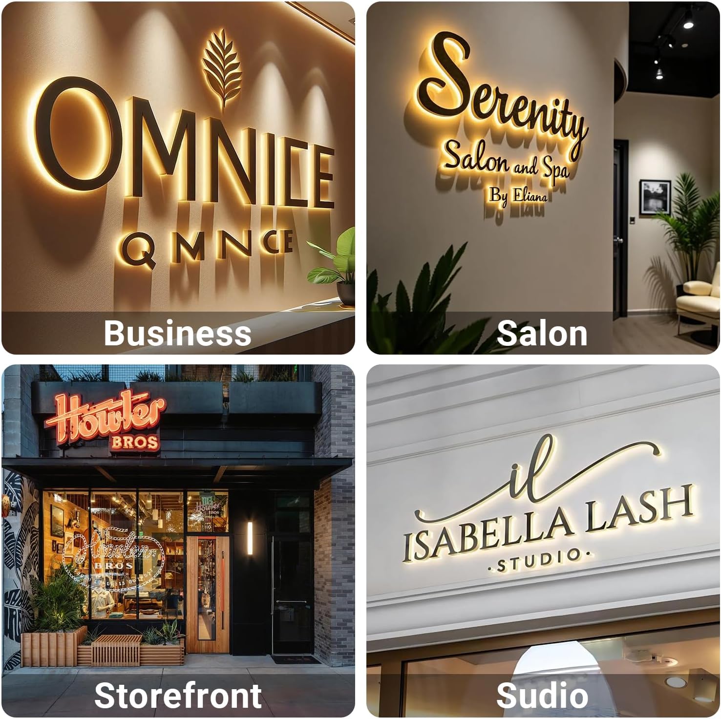 - 🛡️【Superior Craftsmanship】Crafted from premium stainless steel, this Customized company name sign features integrated Backlit Reverse Channel LED lighting. Select from a variety of Metal Surface Process including electroplated, painted, or brushed options in multiple colors, complemented by customizable LED illumination. This Business logo sign for wall display delivers striking dimensional lighting effects – precisely realizing your vision.