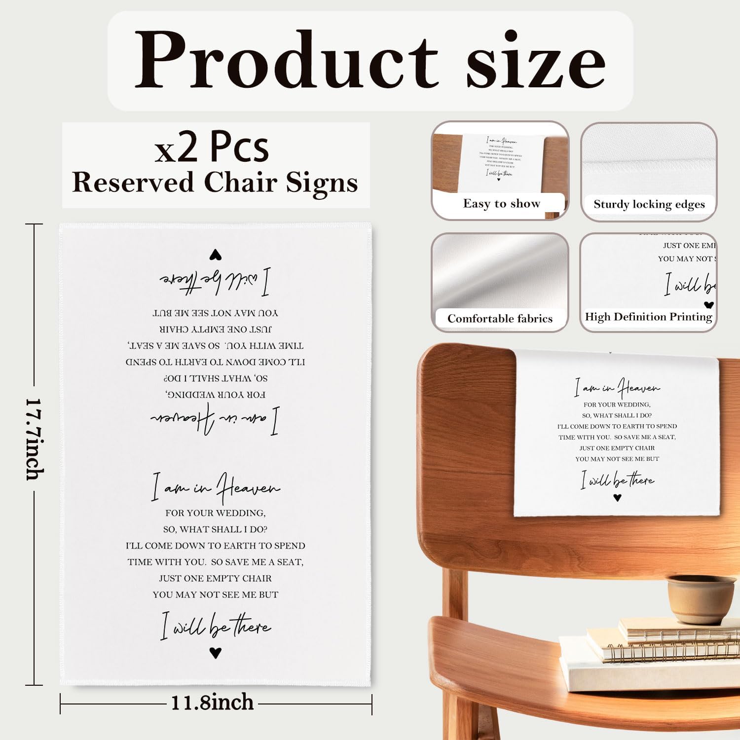 In Loving Memory Wedding Sign, I Am in Heaven for Your Reserved Chair Sign Pew Cloths Seating Placeholder, Wedding Decorations for Reception Celebrations Event (2 Pcs)