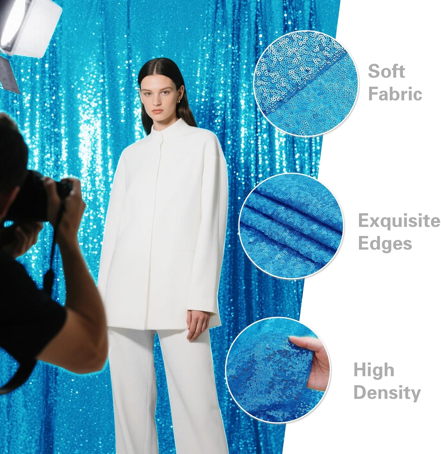 - Durable Material: The sequin backdrop is made of 3MM round density sequins with mesh fabric backing. All sides are well folded and sequins are not easy to drop which can be reused.