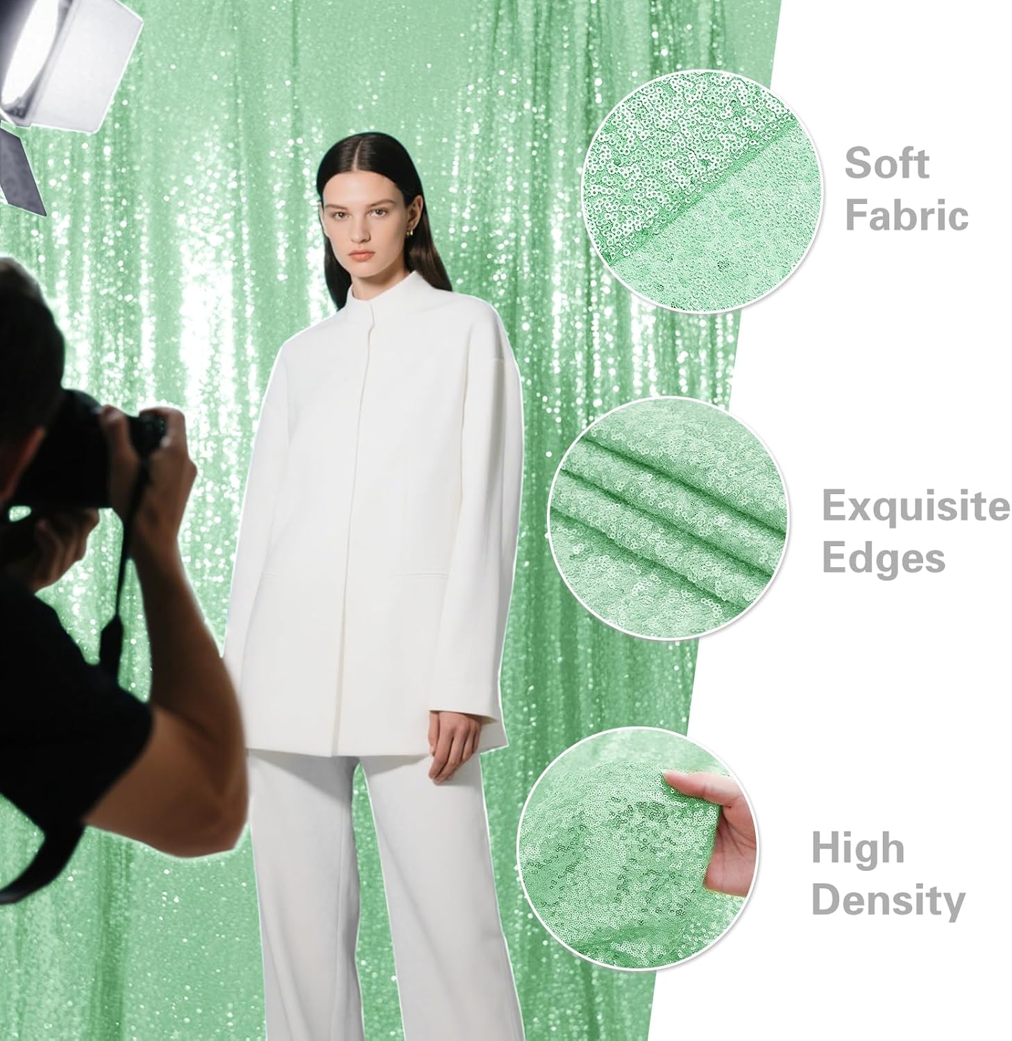 Mint Green Sequin Backdrop Curtain 4 Pieces 2FTx8FT Glitter Photography Backdrop for Party Wedding Birthday Christmas Decorations