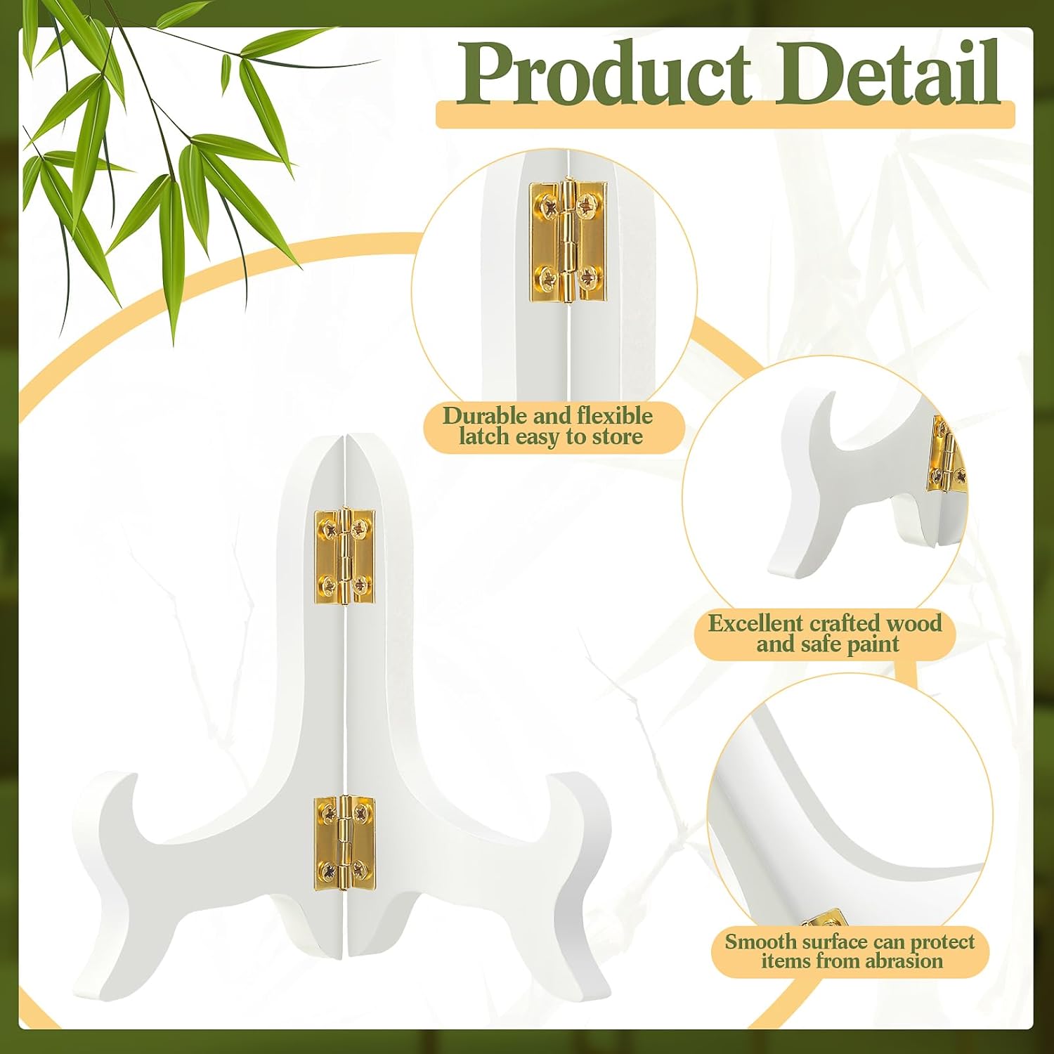 Tatuo 4 Packs Wooden Display Stand Decorative Plate Stands for Display Picture Frame Holder Easels(White,5 Inch)