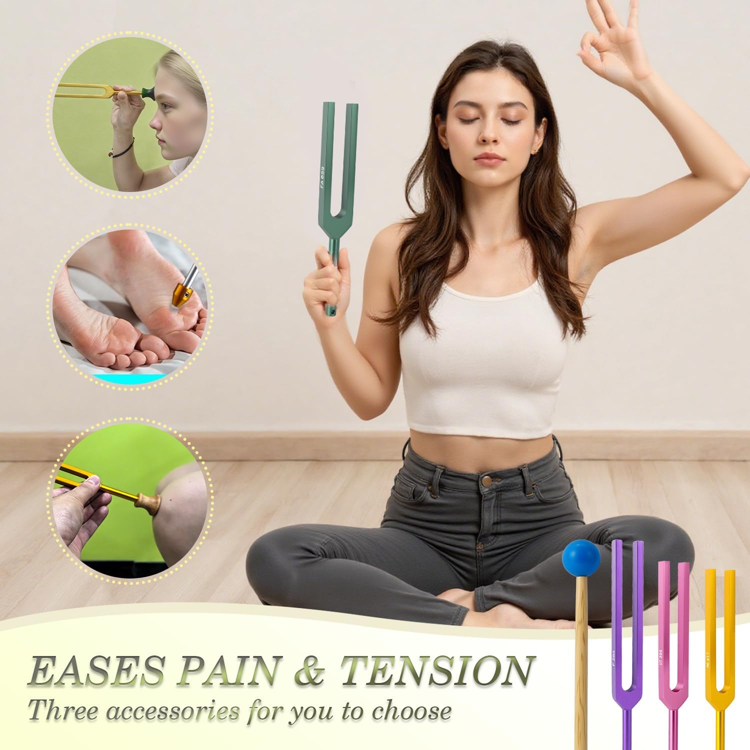 - 【Solfeggio & 432Hz Cosmic Frequency Set】This tunings fork for healing set includes 9 Solfeggio frequencies (174Hz, 285Hz, 396Hz, 417Hz, 528Hz, 639Hz, 741Hz, 852Hz, 963Hz) and the 432Hz cosmic harmony angel tuning fork, perfect for sound healing, chakra balancing, and meditation. Each healing tuning forks set is precision-tuned for accurate vibration and long-lasting resonance.