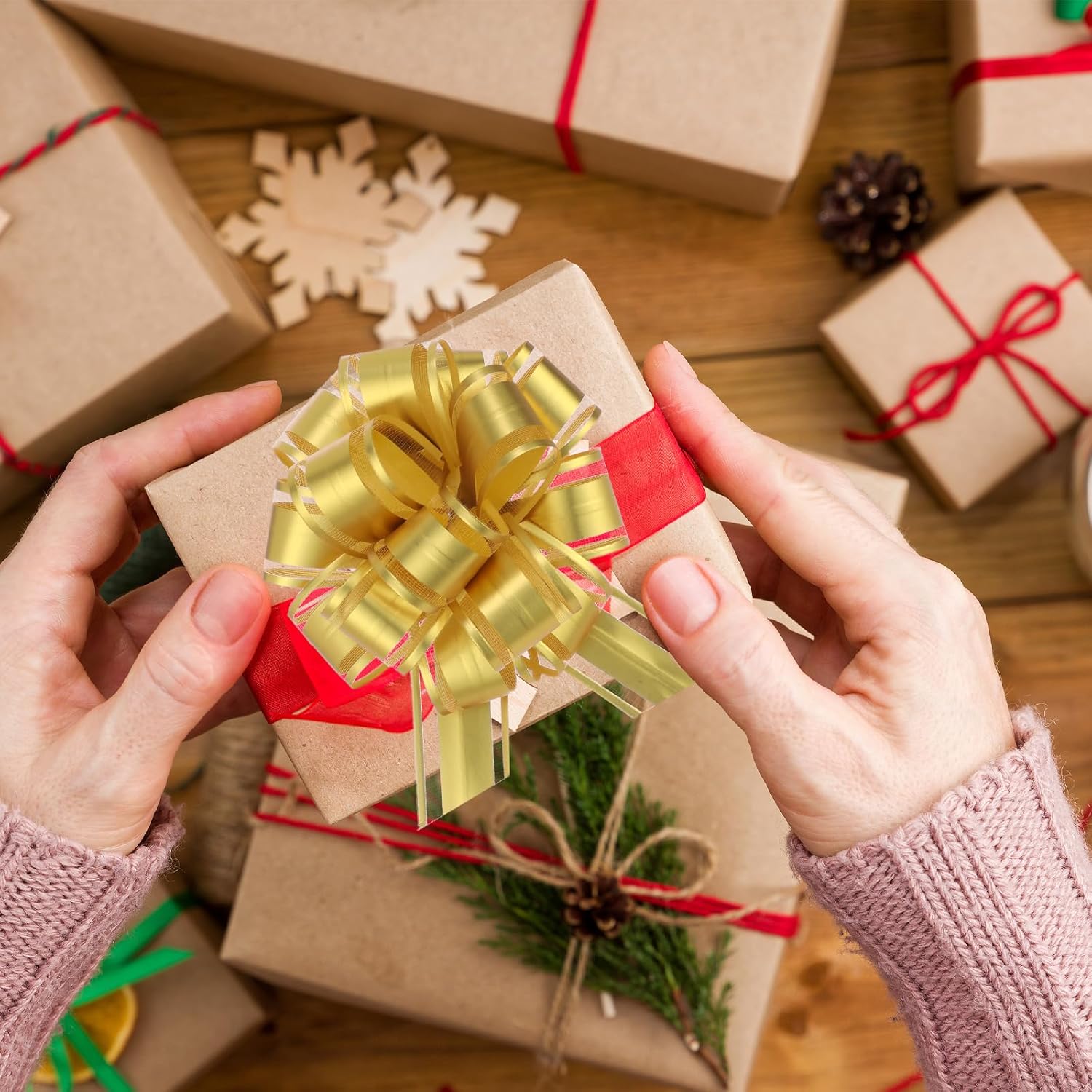 - Easy to install, just pull the 2 thin ribbons in reverse and the bow will automatically form. The Christmas gift bow is easy to install and fix, and the shape is not easy to spread. You can instantly get a beautiful ribbon flower, which can be used for gift packaging