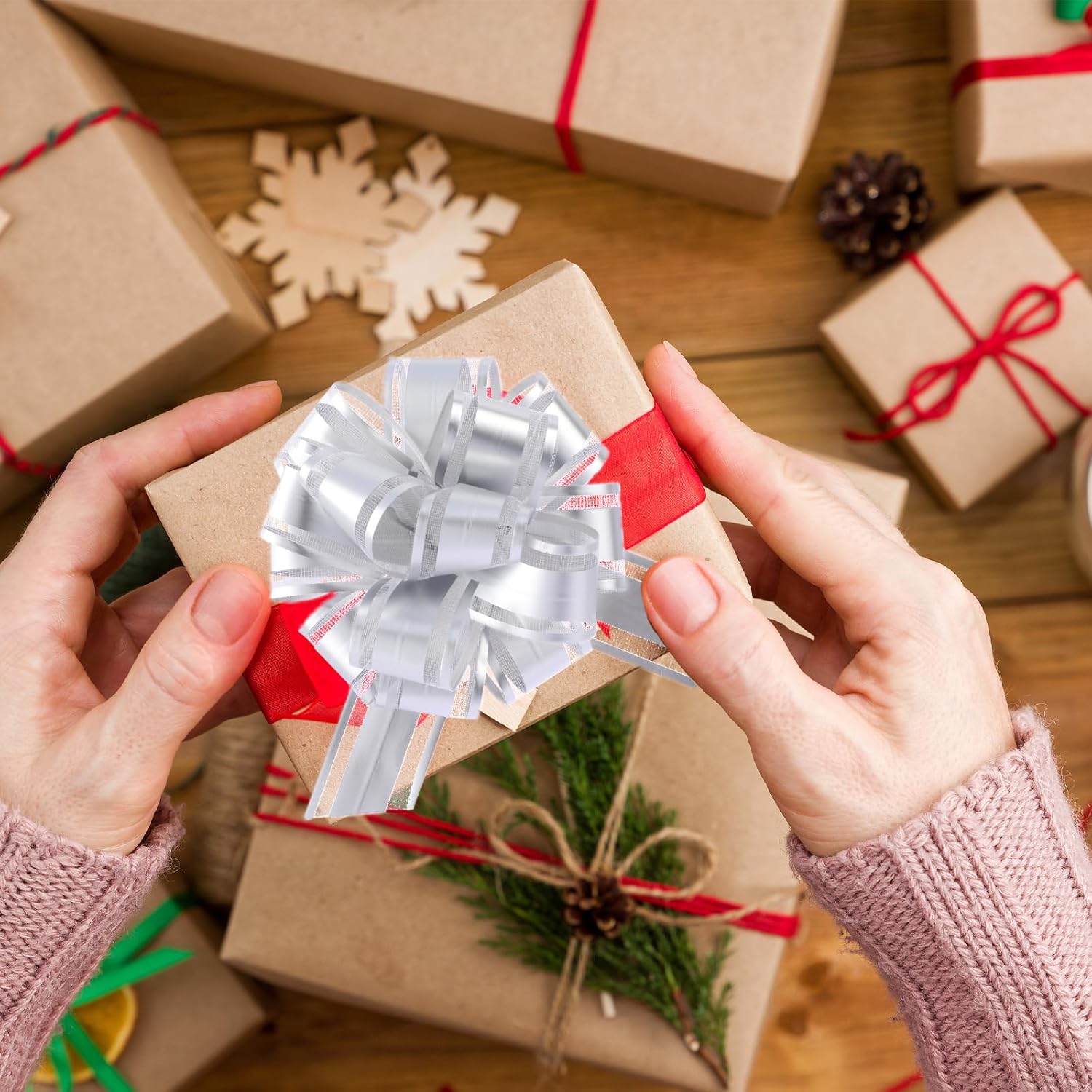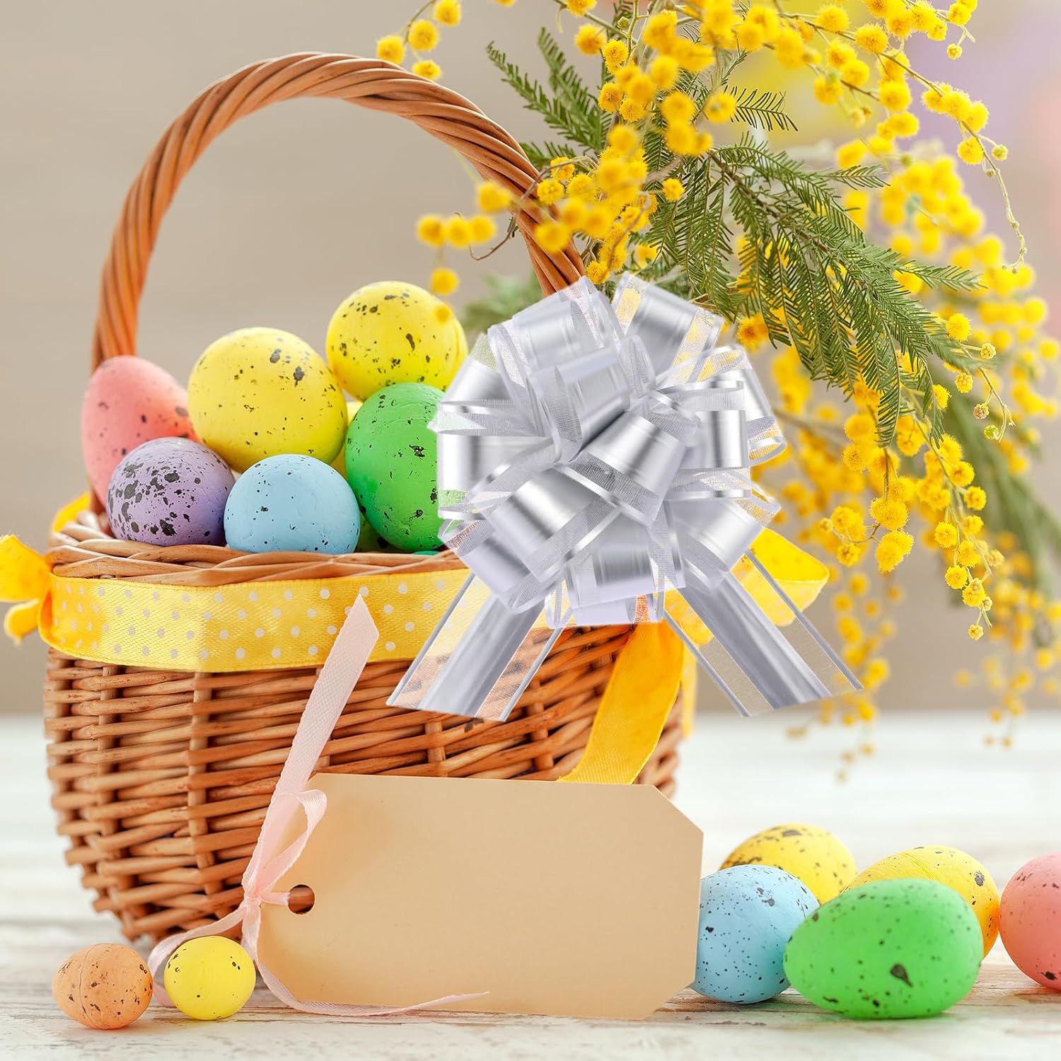 40 Pieces 6 Inches and 3 Inches Pull Bow Wrapping Pull Bow Ribbon Pull Bows for Wedding Baskets,Large Bows for Presents. (Silver)