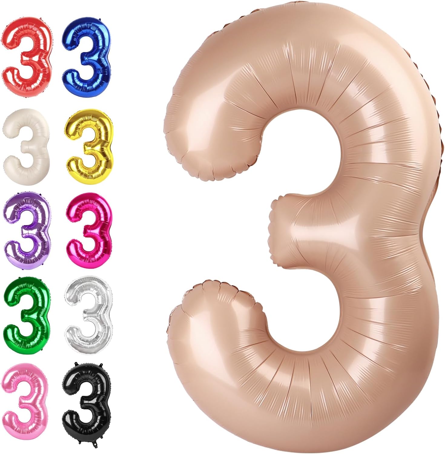 - 3.Versatile 3 Balloon Numbers:Are you still having trouble finding the right ballons for your birthday number balloons?Number balloons 40 inch will be the perfect ornament for any theme birthday party,anniversary,wedding,baby shower,graduation,Christmas,Halloween,class activities and other special days. For children and adults. Birthday number balloon 3 light brown is a beautiful romantic 3 birthday decorations and shooting background. You and guests will enjoy a relaxing party time together!