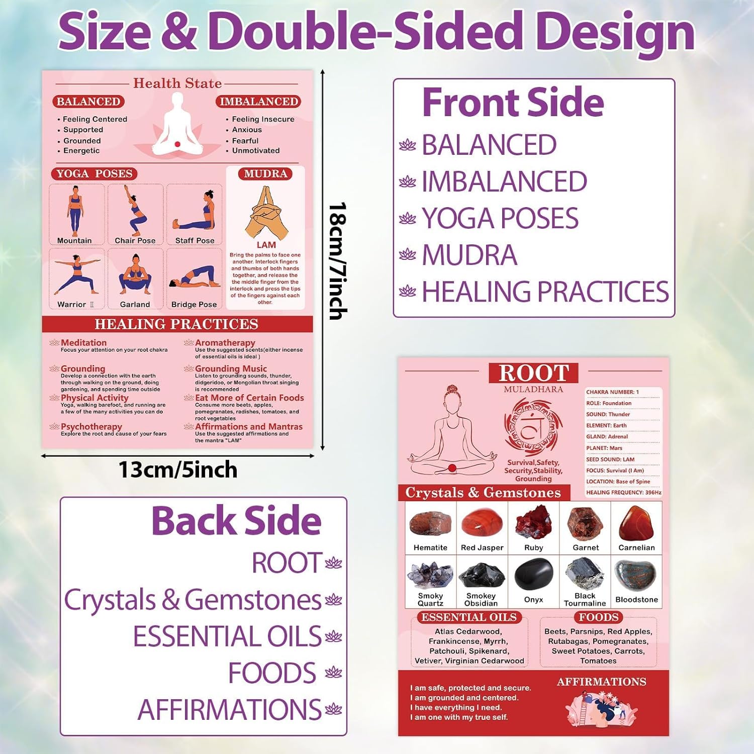 - Suitable Size: Our chakra cards measure 7" x 5" (18 cm x 13 cm), offering a comfortable reading experience. They are compact enough to easily fit into your purse, folder, or notebook, making it simple to take chakra practice anywhere