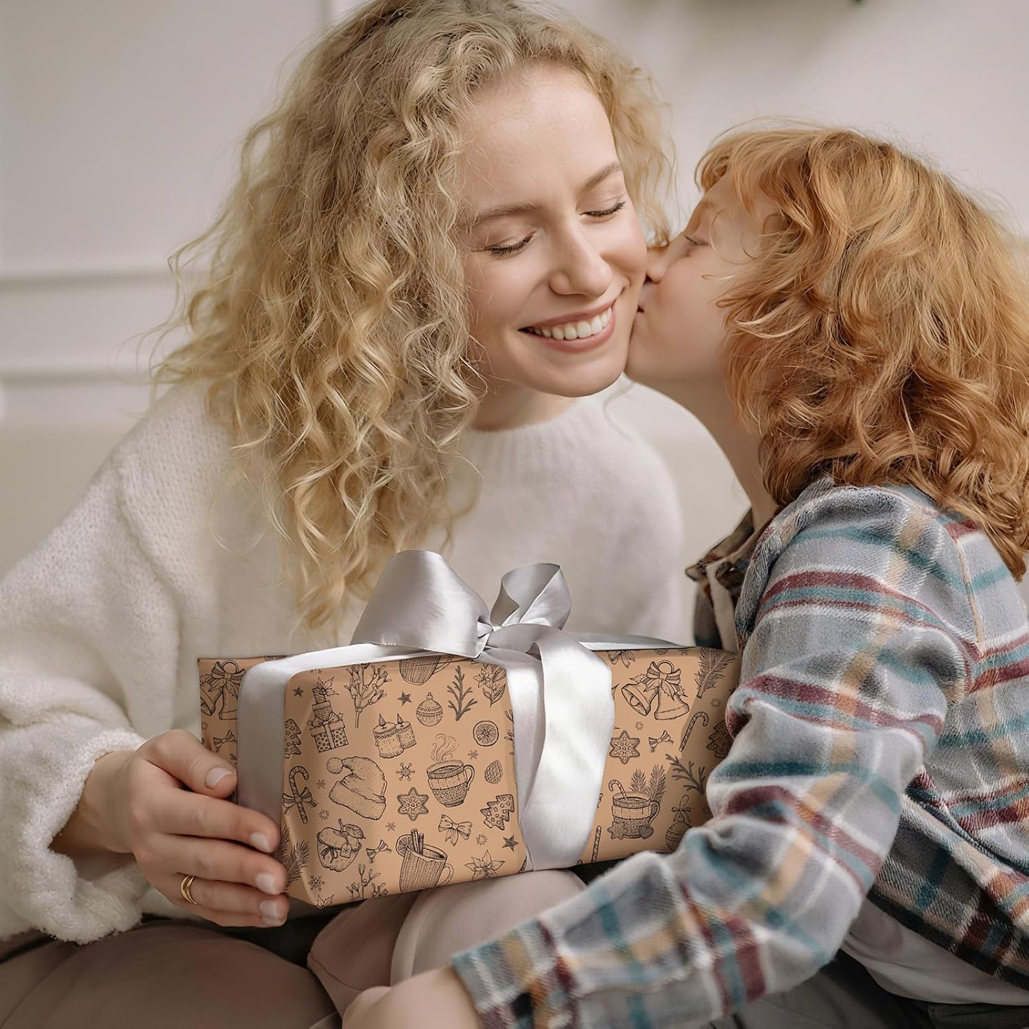 - Versatile for All Your Christmas Magic: Perfectly wraps gifts for loved ones. Also ideal for creative DIY projects like festive table runners, charming gift tags, or unique tree ornaments. The classic kraft and sketch design complements any cozy winter celebration theme.