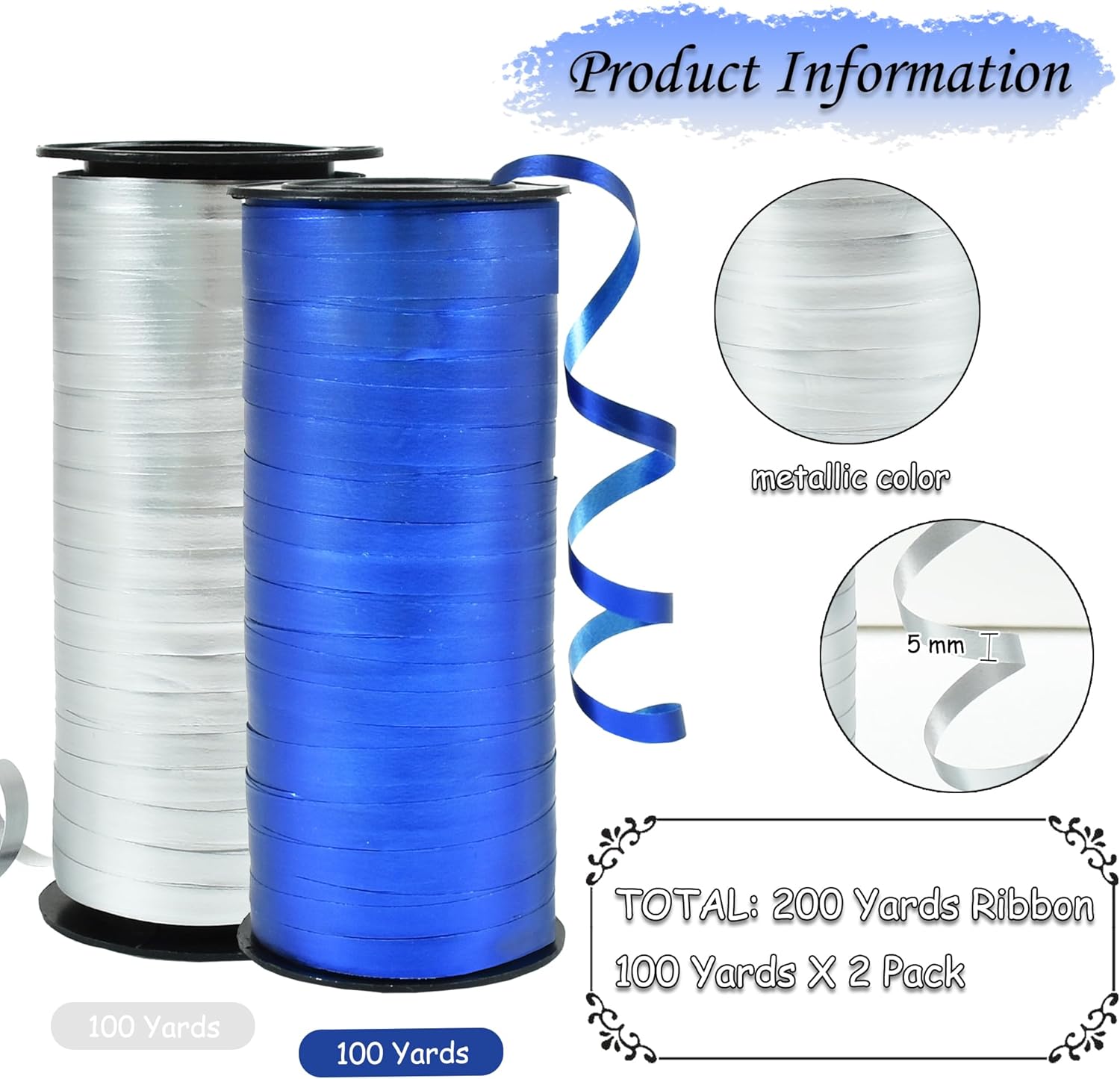 - Curling ribbon measurement: the curling ribbon is 5 mm in width and 200 yards in total length, enough for using, made of plastic, quality and durable for long usage life