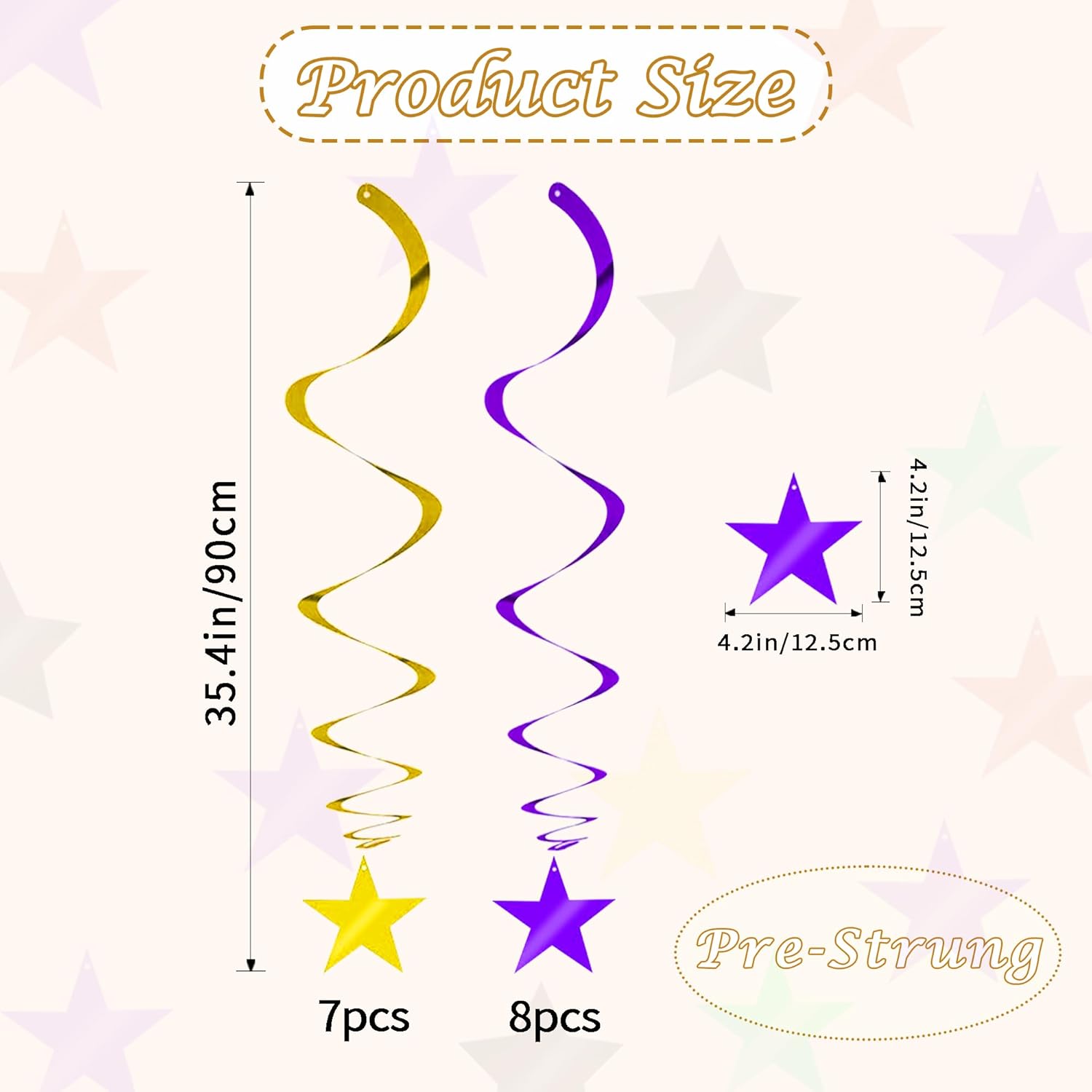 - 【Package include】A total of 15 pcs hanging swirl decorations, including 15 double swirls and 15 swirls with PVC star. There are 15 strings in total, each of which is connected with a double swirls and a PVC star. Flexible swirls, hanging length can extend to approx 36"/91cm long.