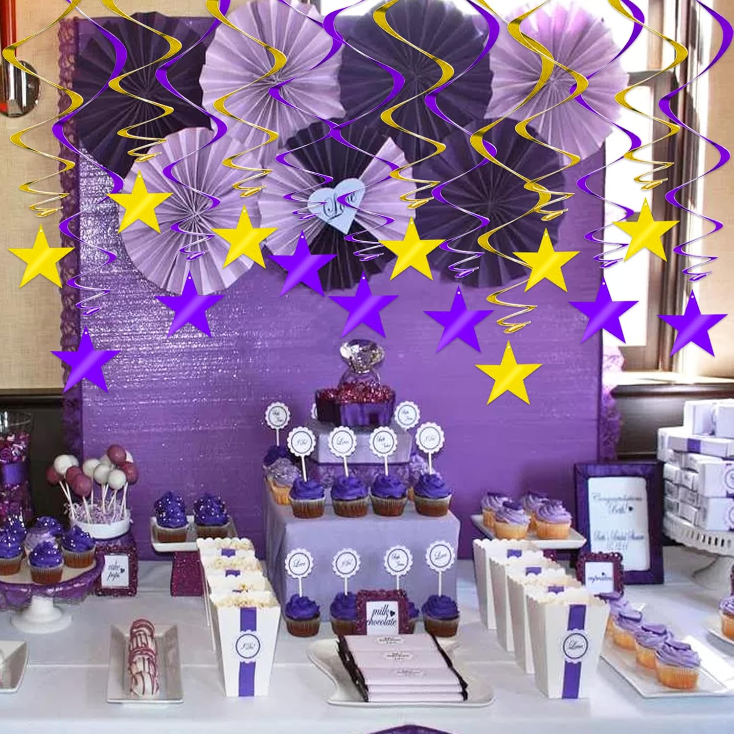 - 【Decoration】 These Hanging stars party supplies can catch the light and make the room festive, great add in for any birthday party graduation party decorations.