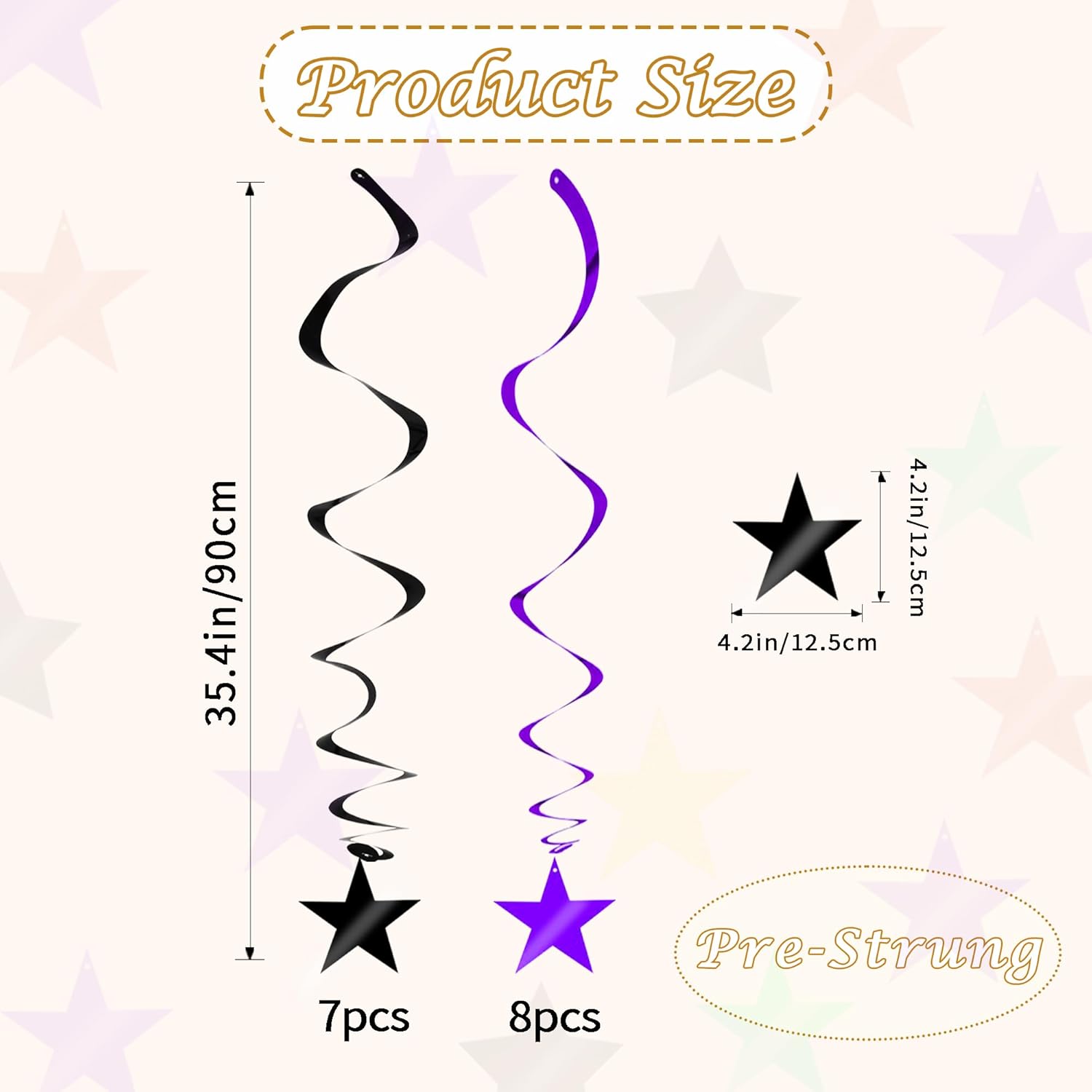 BEISHIDA Black Purple Star Halloween Hanging Swirl Decorations, Halloween Party Supplies for Horror Party Wedding Baby Shower Birthday Decorations,Pack of 15