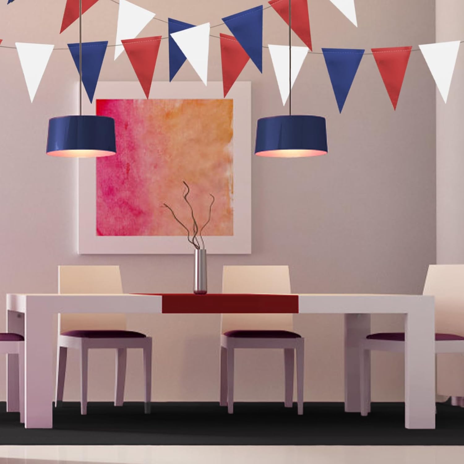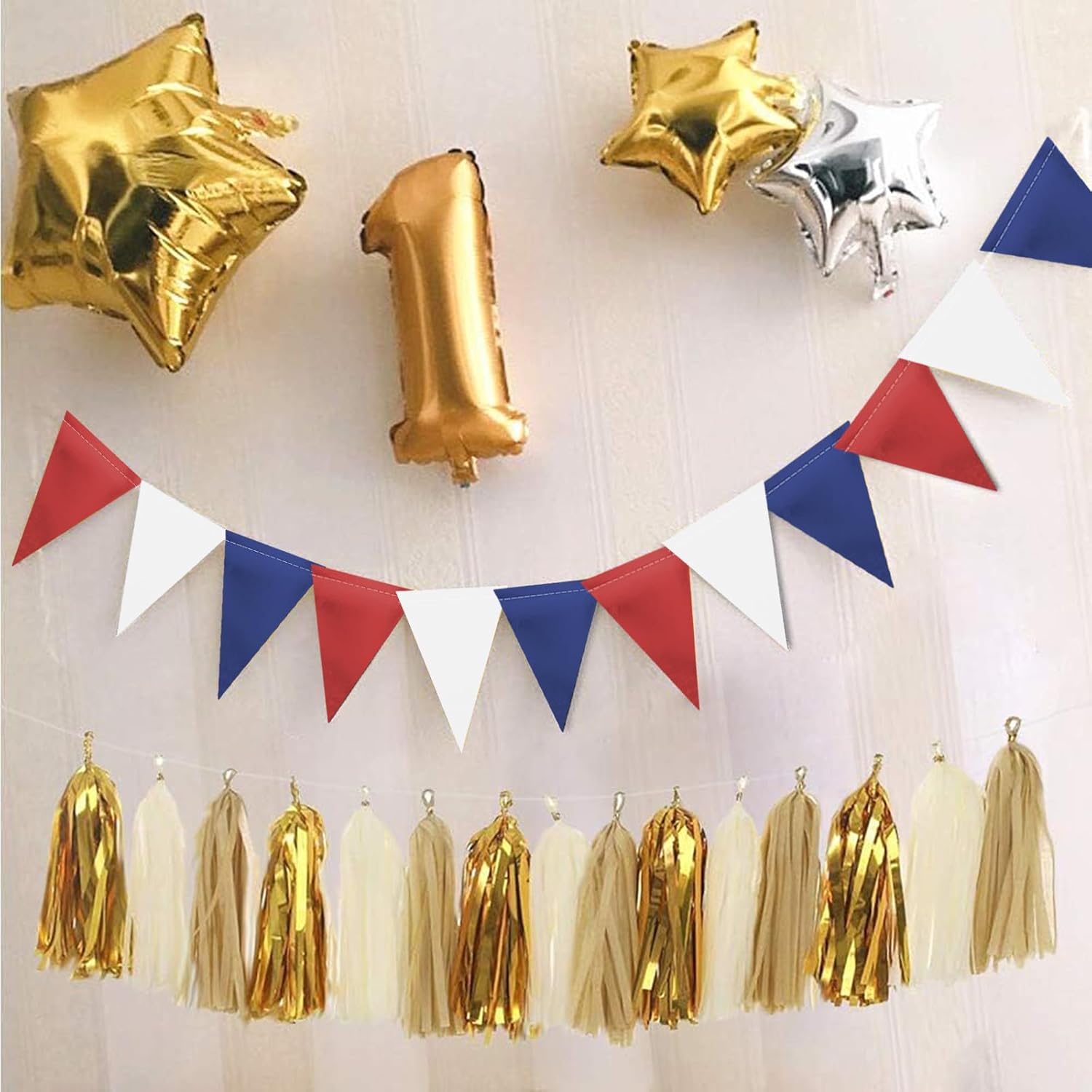 MerryNine Triangle Flag Bunting Banner, 3 Pack Vintage Style Pennant Banner for Wedding, Baby Shower, Event & Party Supplies 45pcs Flags (Red Blue White)