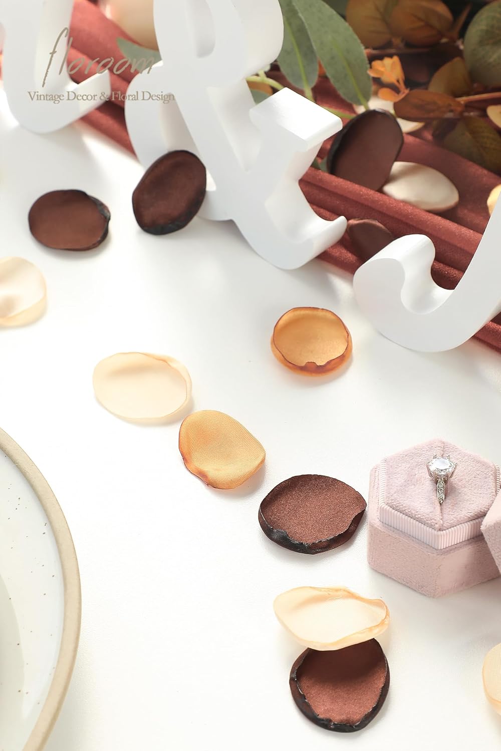 Floroom 300pcs Rose Petals Rust Brown Earth Tones Faux Silk Flower Petals for Wedding Flower Girl Basket Aisle Scatter Dinner Table Centerpieces Party Confetti Bridal Shower Romantic Night Decoration