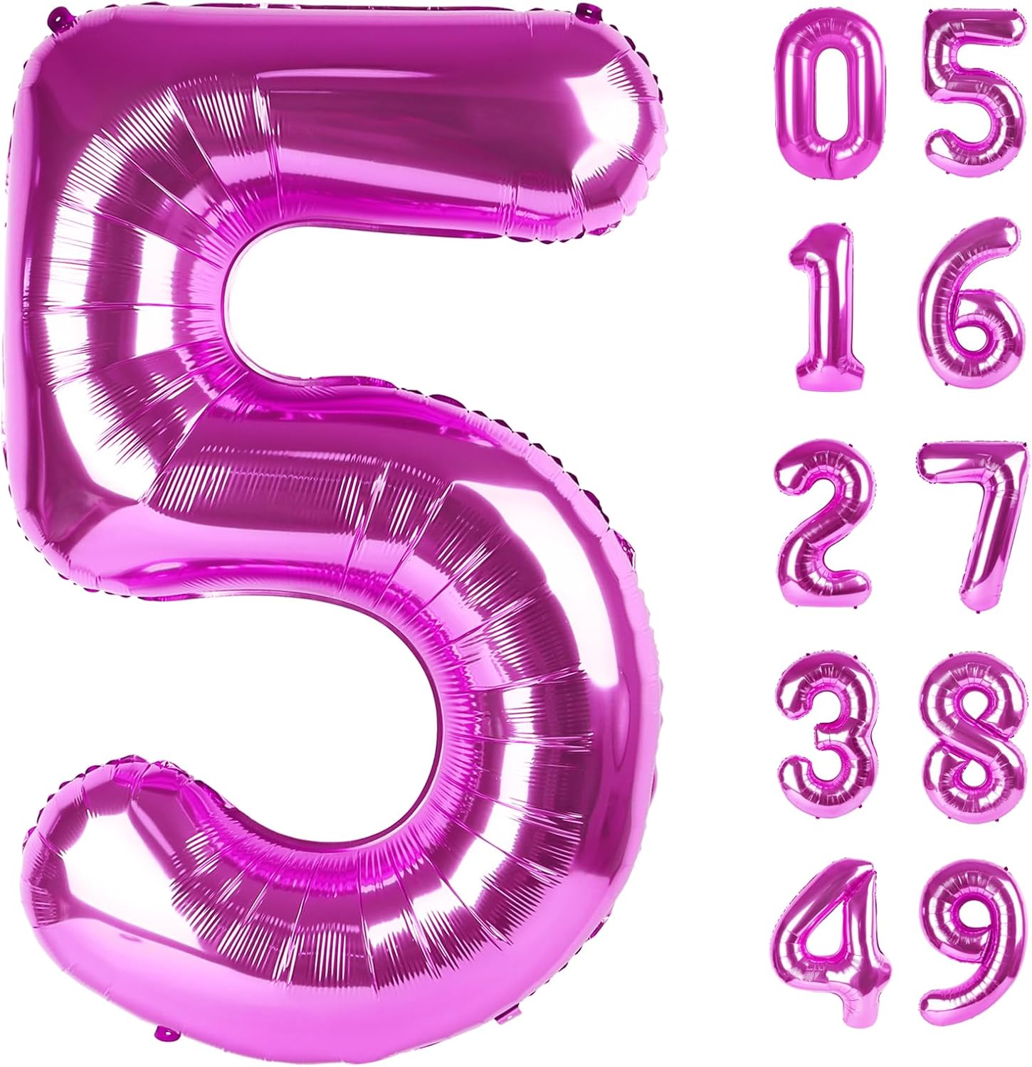 - 4.Suitable 40 Inch Easy to Use:40 inch 5 birthday balloon,huge size and beautiful rosy purple 5 balloon appearance.5 balloon can reduce the complexity of installation, you can use a straw at the ballons hole, with natural air to blow and deflate the birthday number balloons, filled 90% of the seal, without fingers tied,greatly reduce the installation troubles.After the 5th birthday decorations for boys party,use a straw or deflate yourself,Amazing and convenient rosy purple decorations birthday!