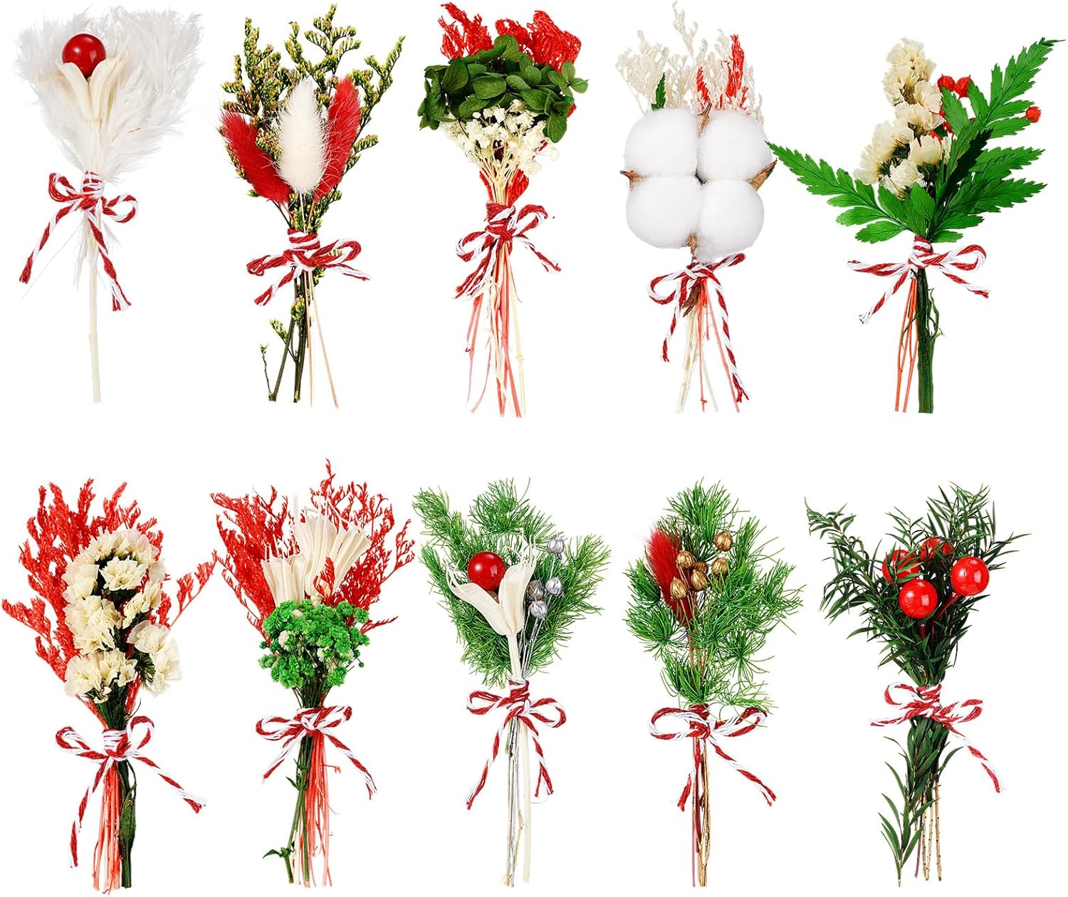 10/12/24 Pack Dried Flowers for Vase Various Mini Bouquet Dried Small Wildflowers Natural Real Flowers Bulk for Crafts DIY Wedding Decor (10, Christmas Color1)
