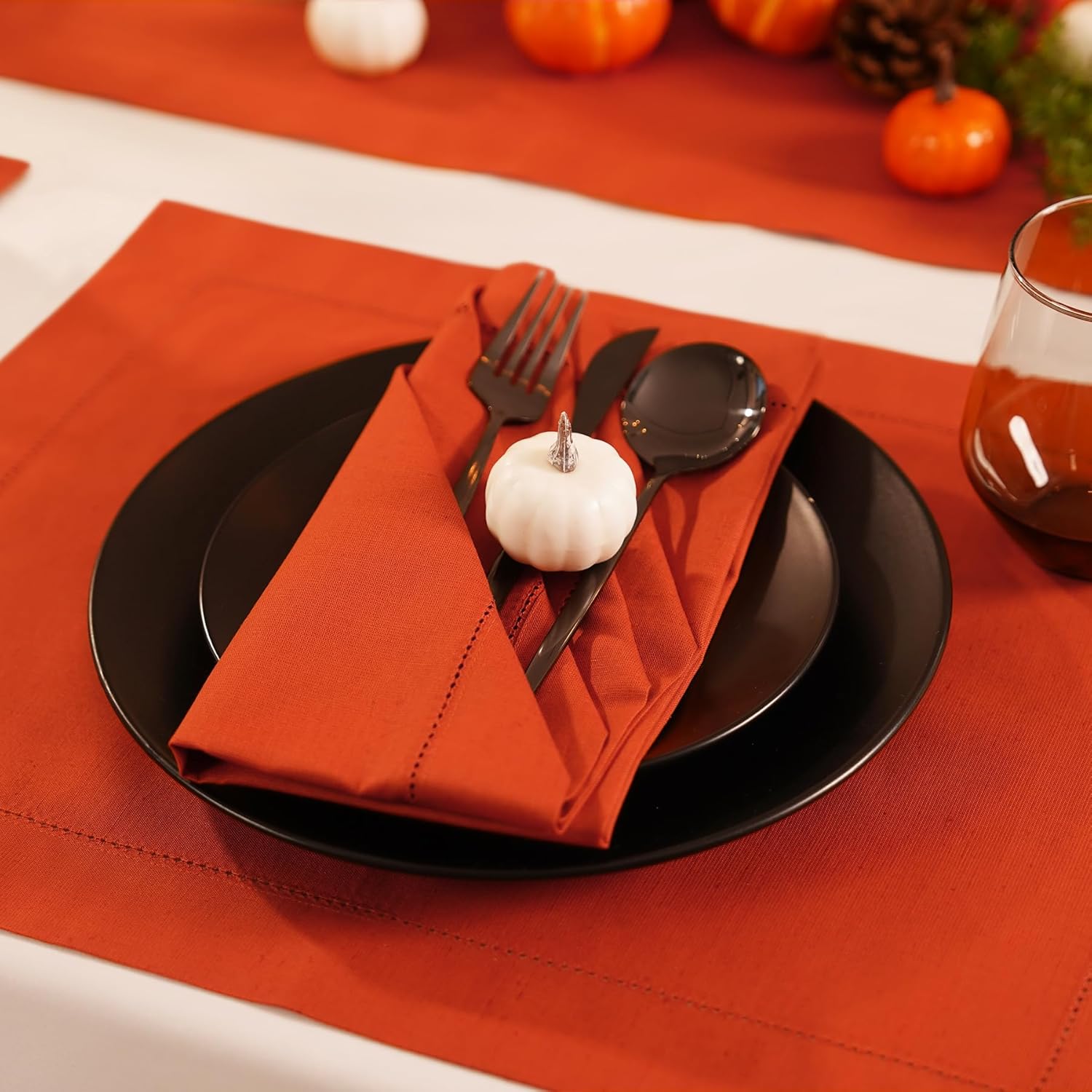- Cotton Linen Hemstitch Pumpkin Dinner Napkins 20 X 20 Inch