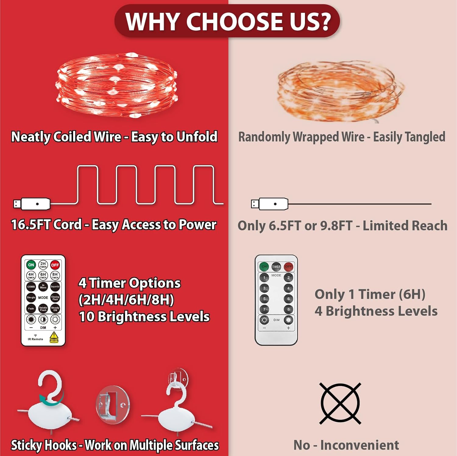 - Safety & Durable: Operated with 5V LOW VOLTAGE, And will not get overheated, totally NO risk to cause any electric shock or fire hazard. Very Sturdy & supper safe to touch. Waterproof fairy lights Perfect for indoor and outdoor decorations: wedding, backdrop,party,home, window, wall, bedroom etc. Unravel easily with no tangles